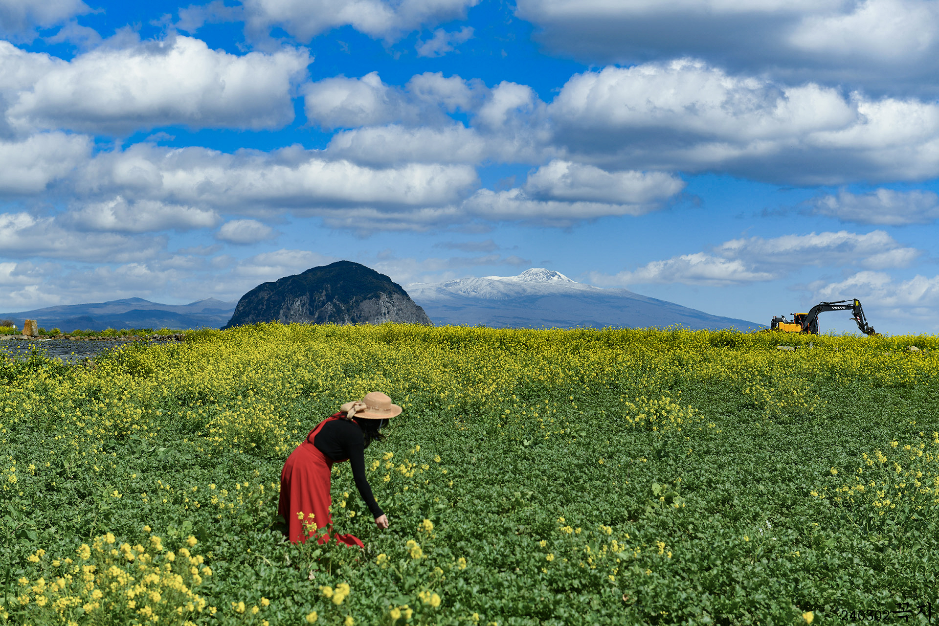 제주에서 사람과 포크레인