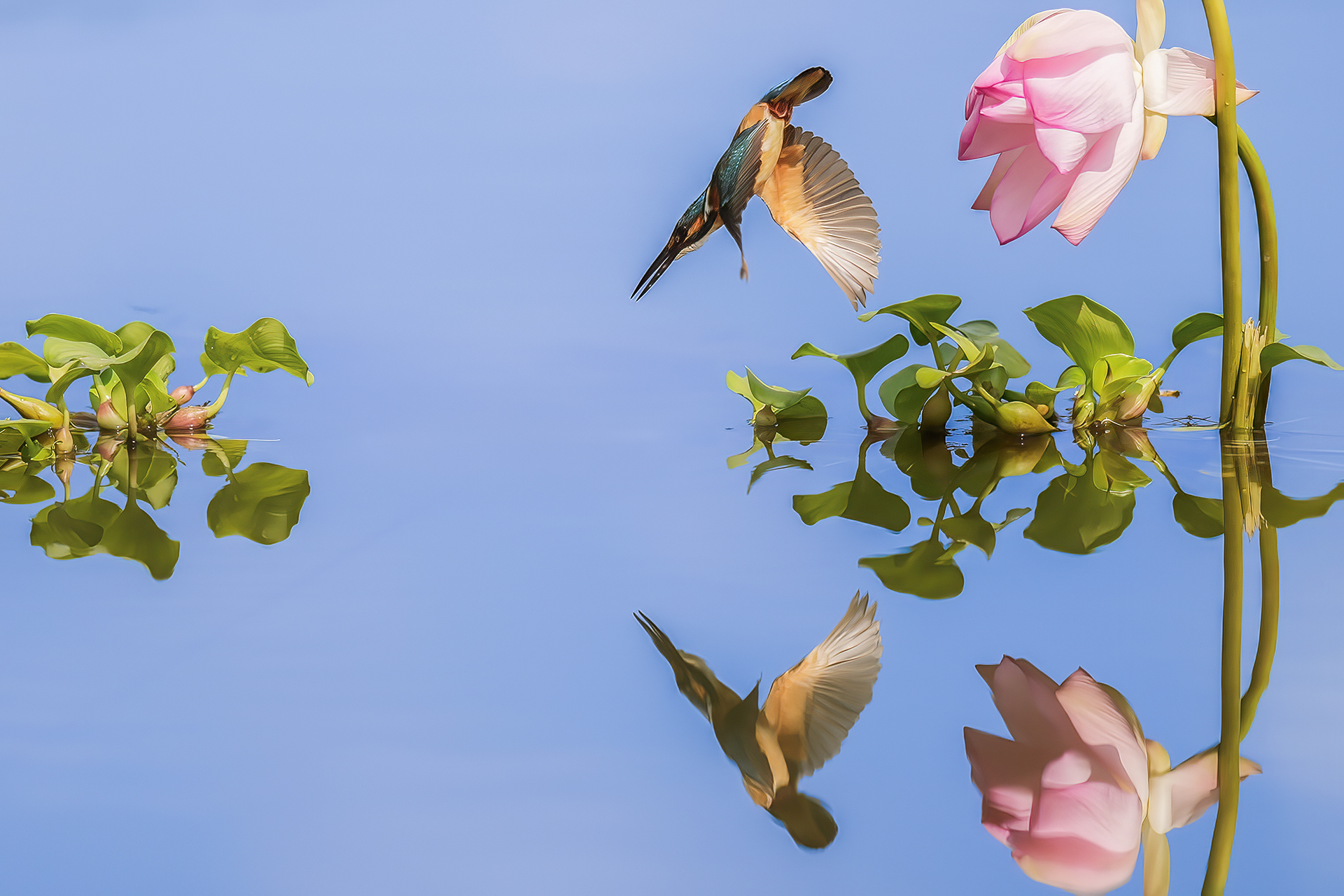 물총새의 입수전 장면.