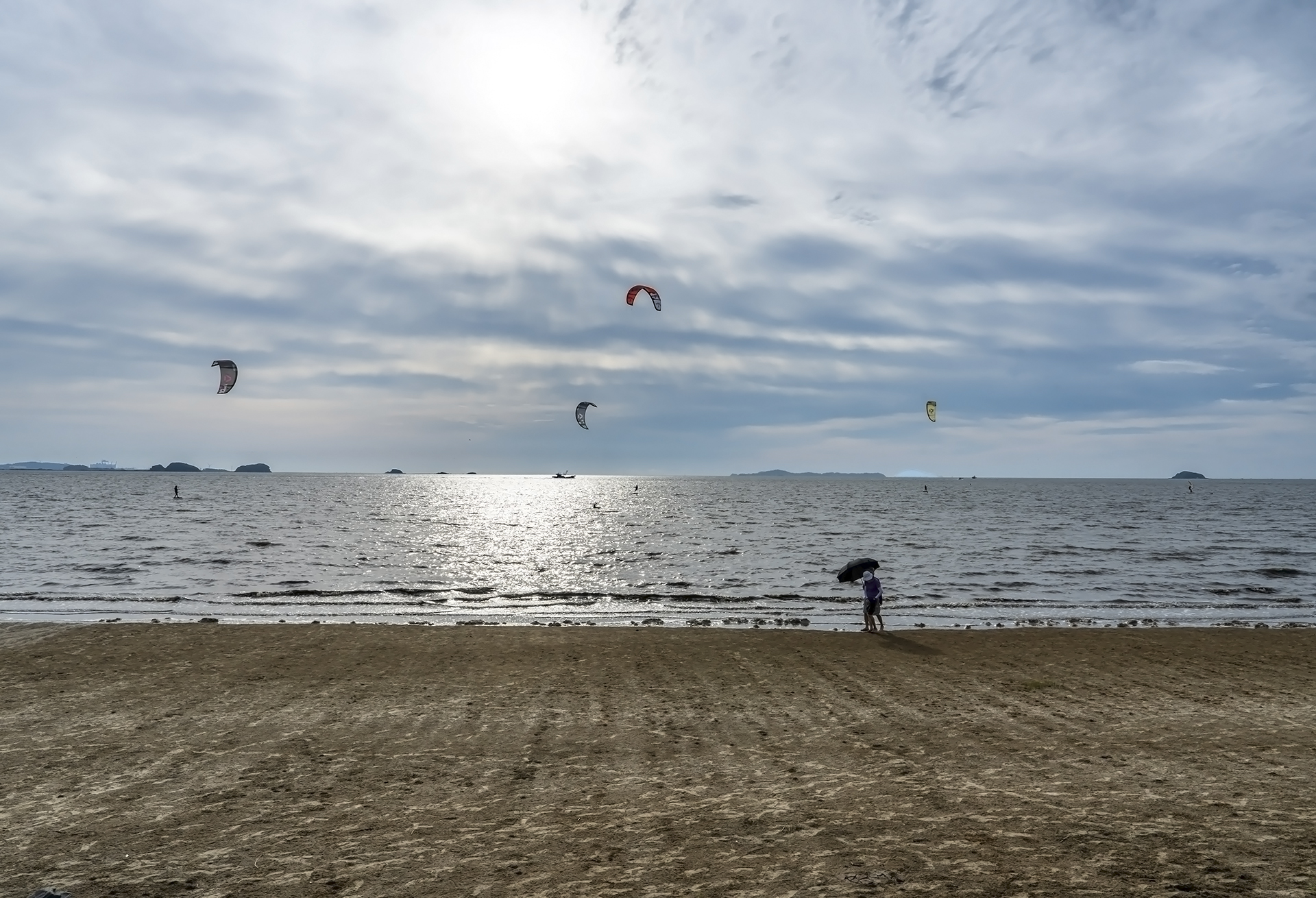 서천 바닷가에서 막바지 여름을 즐기는 사람들의