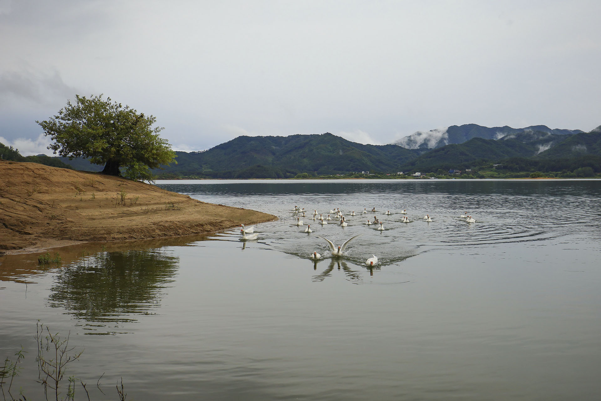 거위들의 아침 산책.