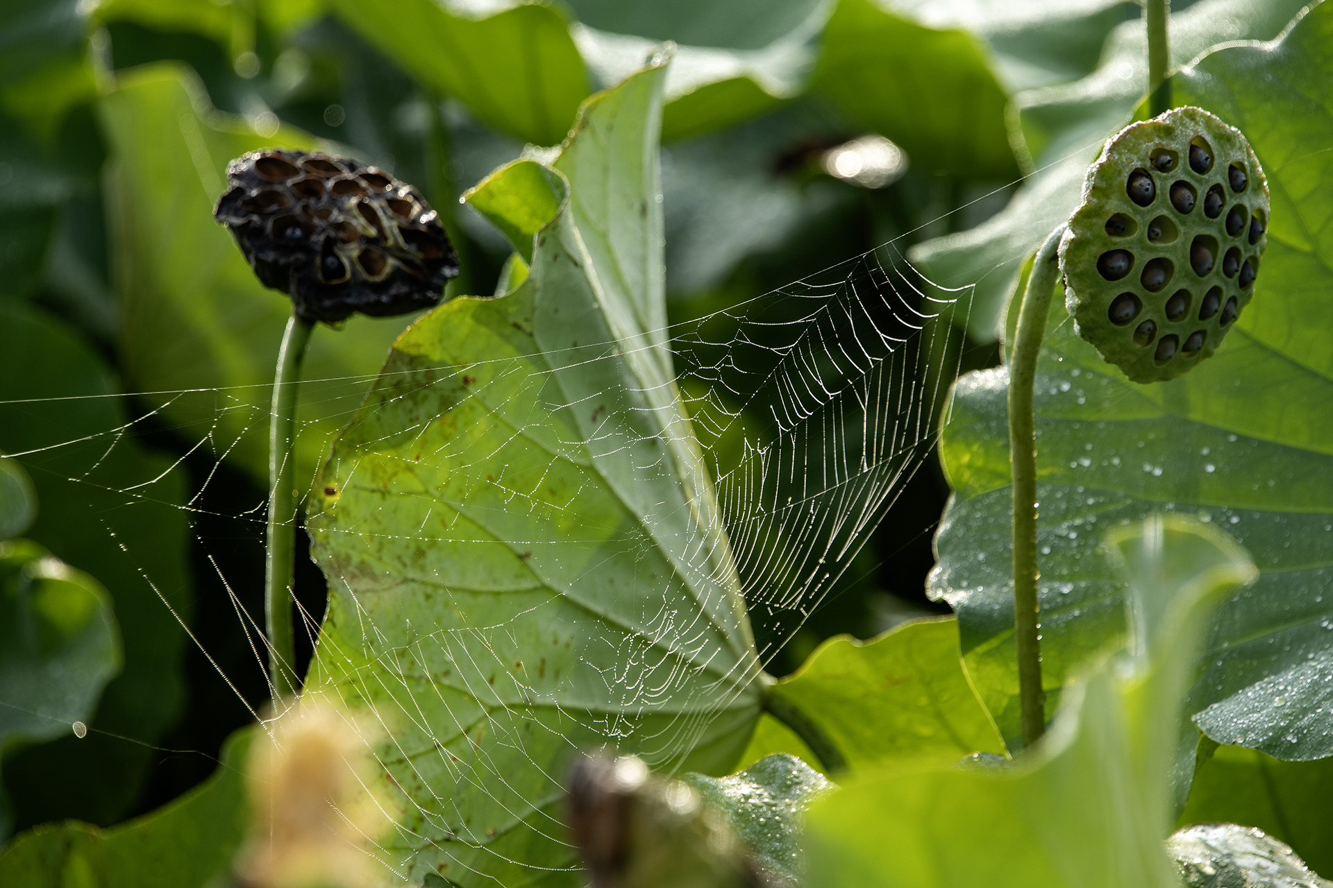 꽃이 진 연밥과 거미줄