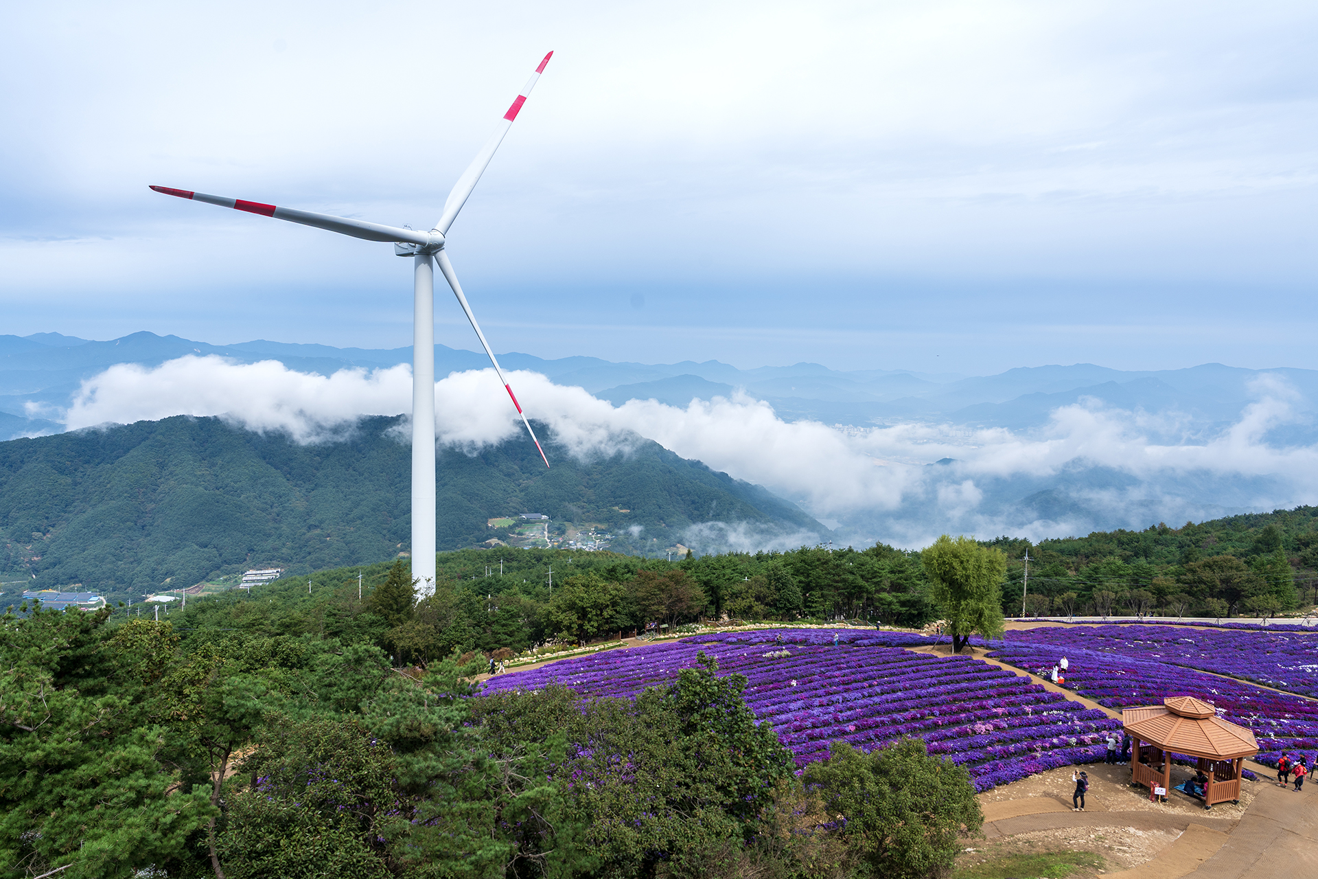 감악산 별바람언덕 아스타국화와 풍력발전기