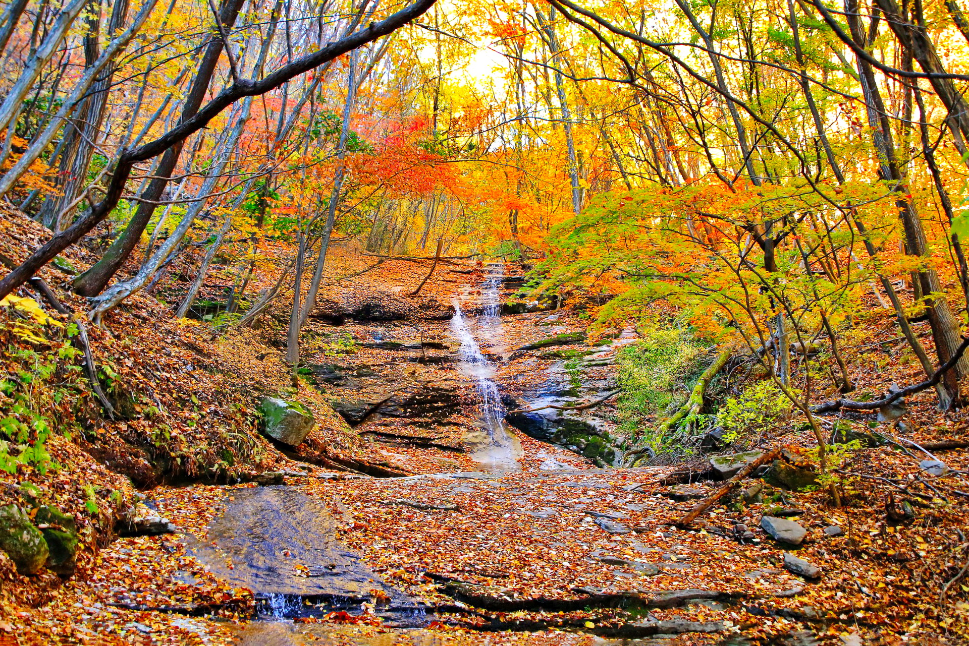은해사 가는길에 가을단풍과 작은 폭포의아름다운 풍경~