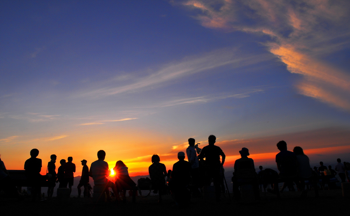 인산인해속 노을이 참 아름답다