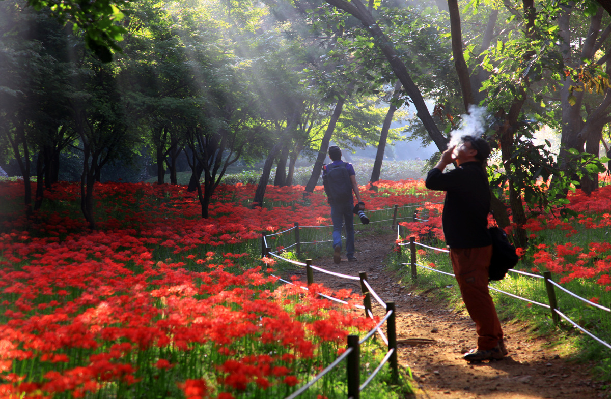 꽃들이 '금연'이라고 외치는 듯...