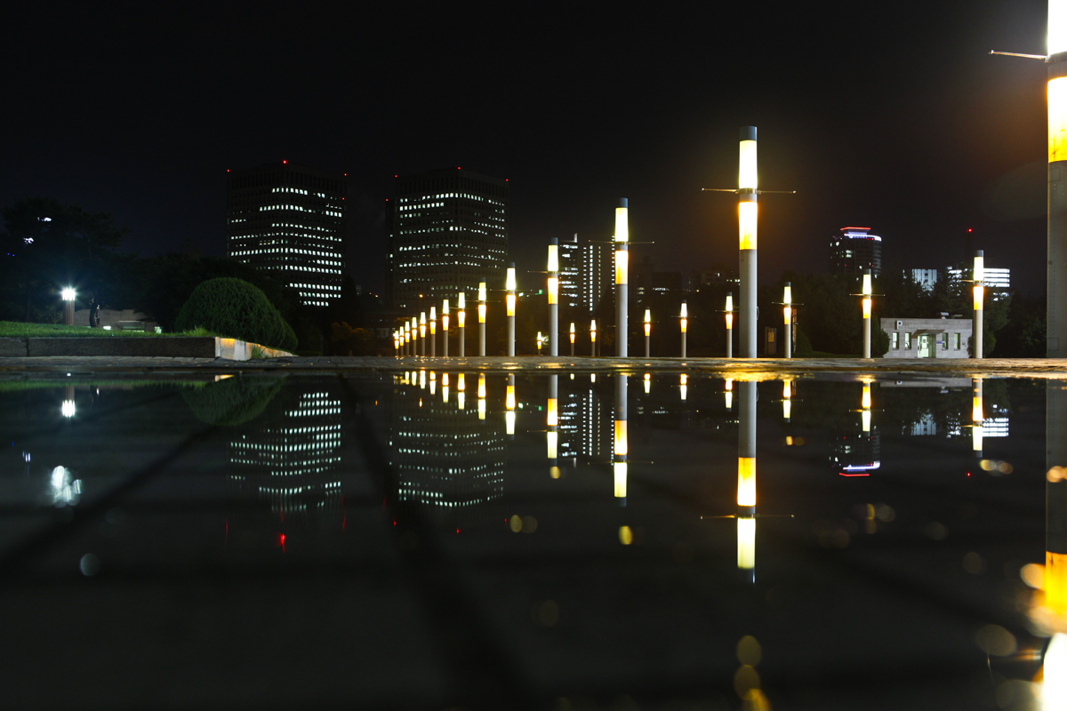 예술의전당에 비친 밤에도 불켜진 종합청사