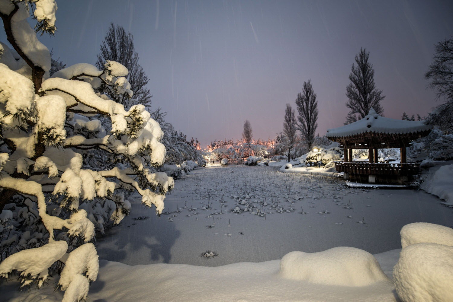 이른아침 눈내린 보문정에서...