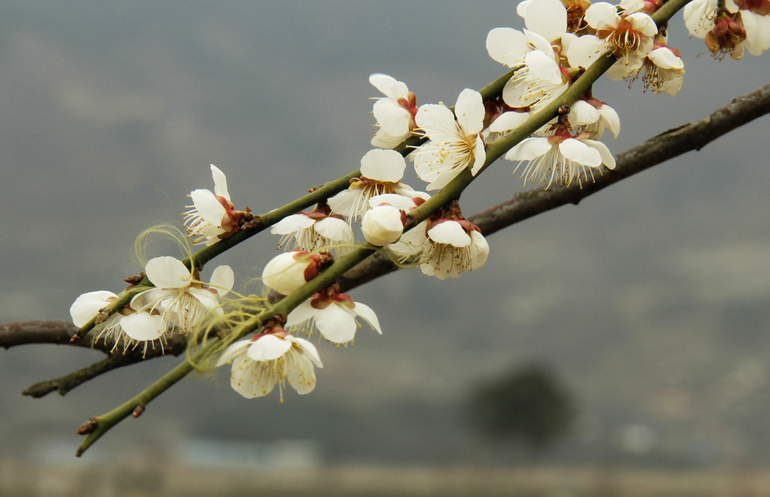 매화사이로 부부송이 보인다.