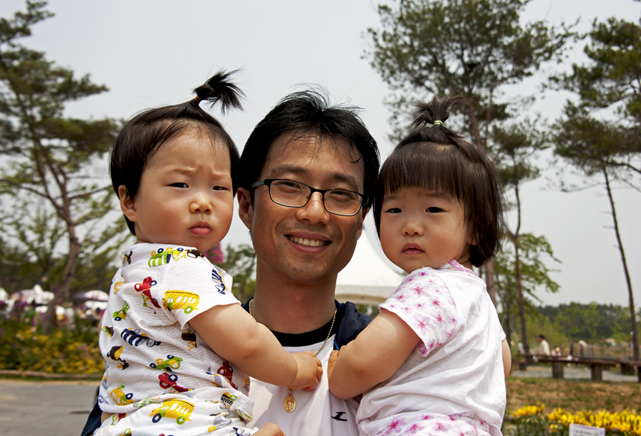 쌍둥이 아빠....참 행복해 보입니다.