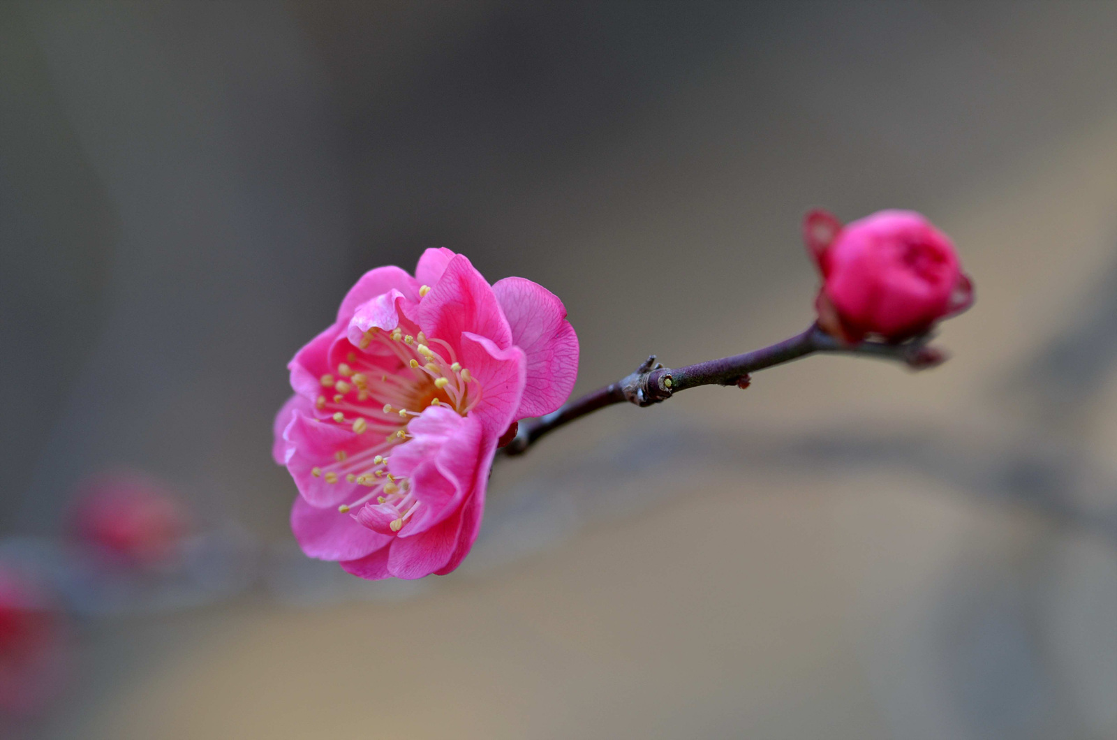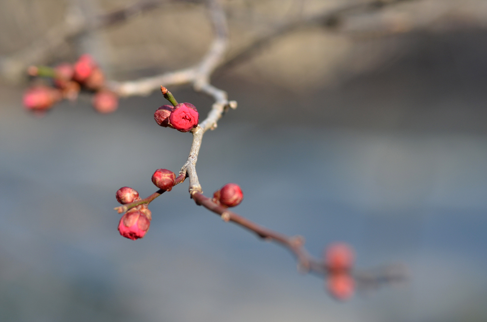 후원에 홍매가 방긋
