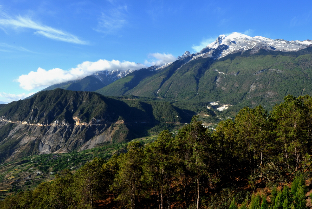호도협 트레킹 후 합파촌으로 이동중 바라본 옥룡설산.