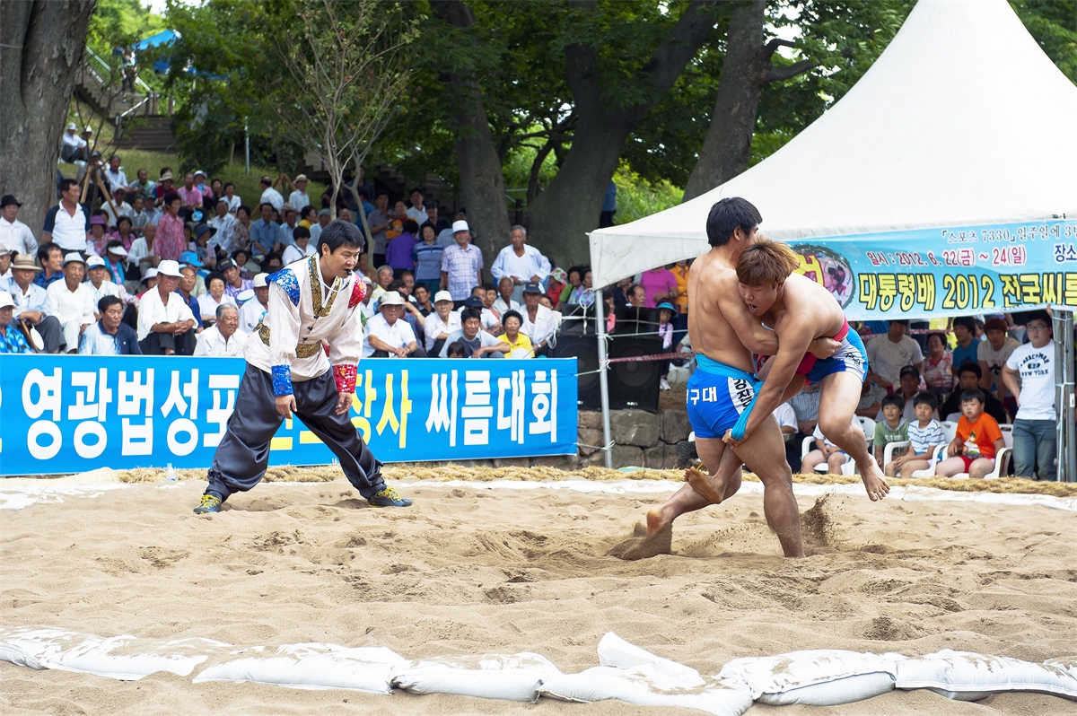 전남 영광 전국장사씨름대회에서의 힘찬 들배지기.