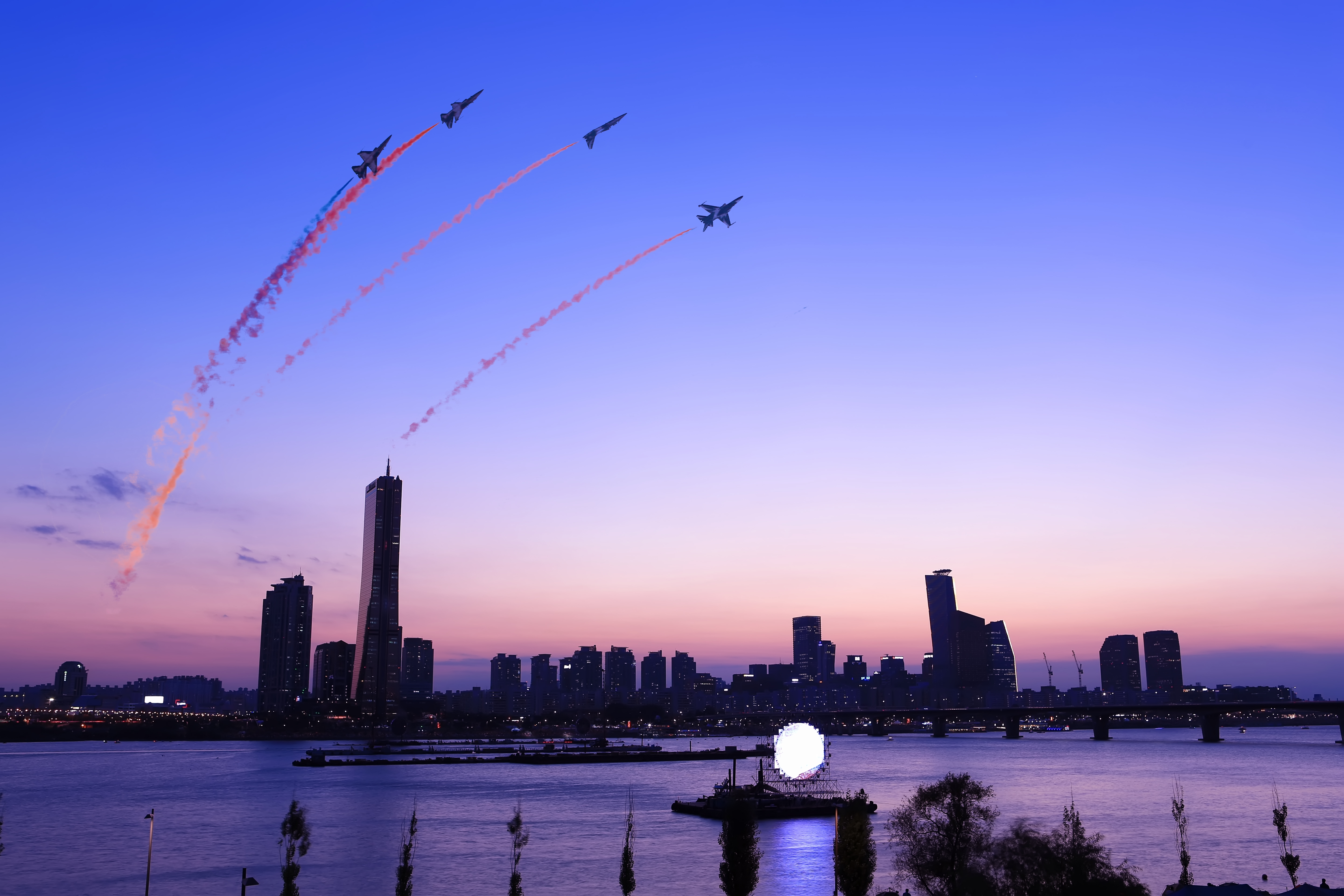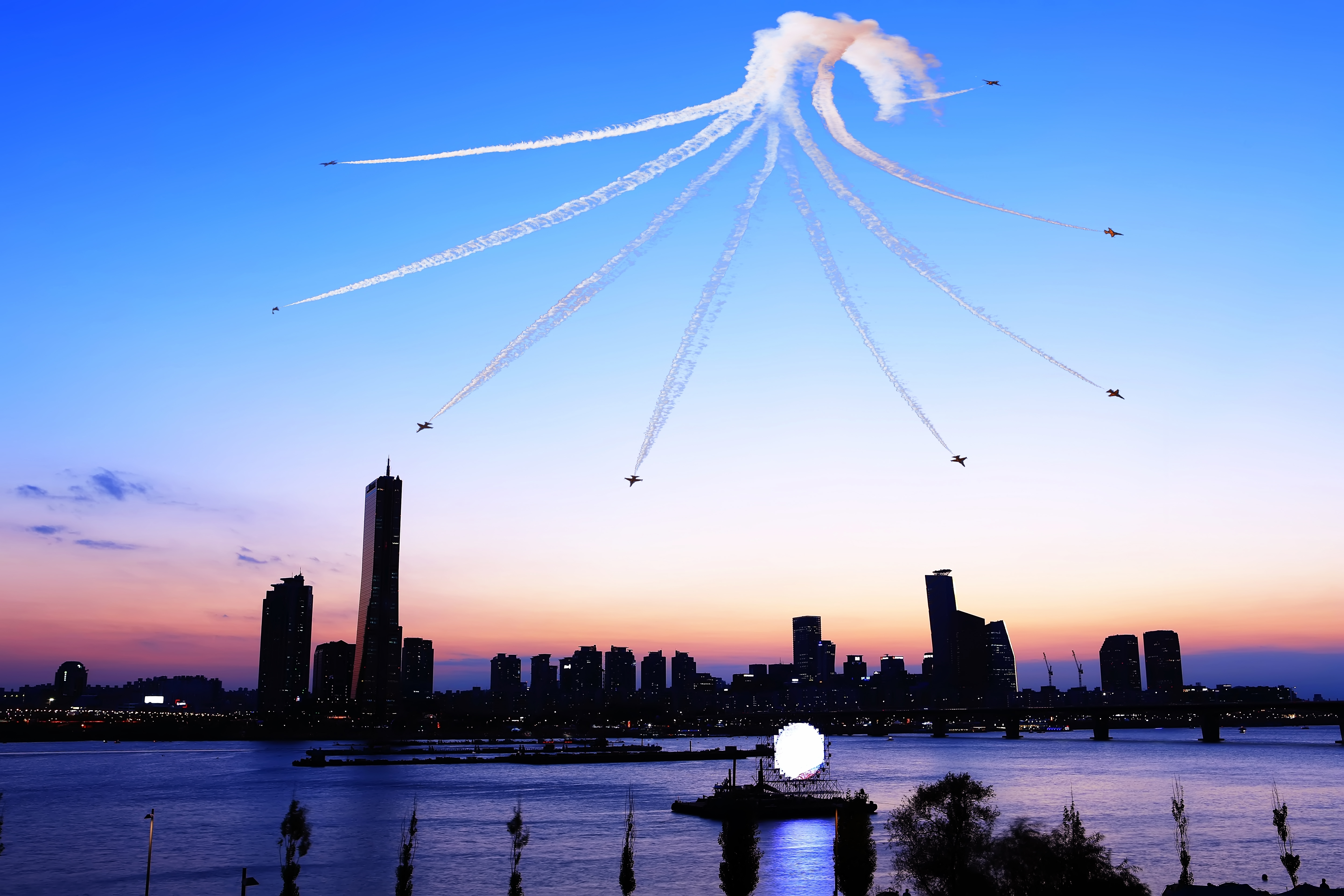 경기항공전과 여의도 63빌딩 저녁노을에 합성사진입니다.