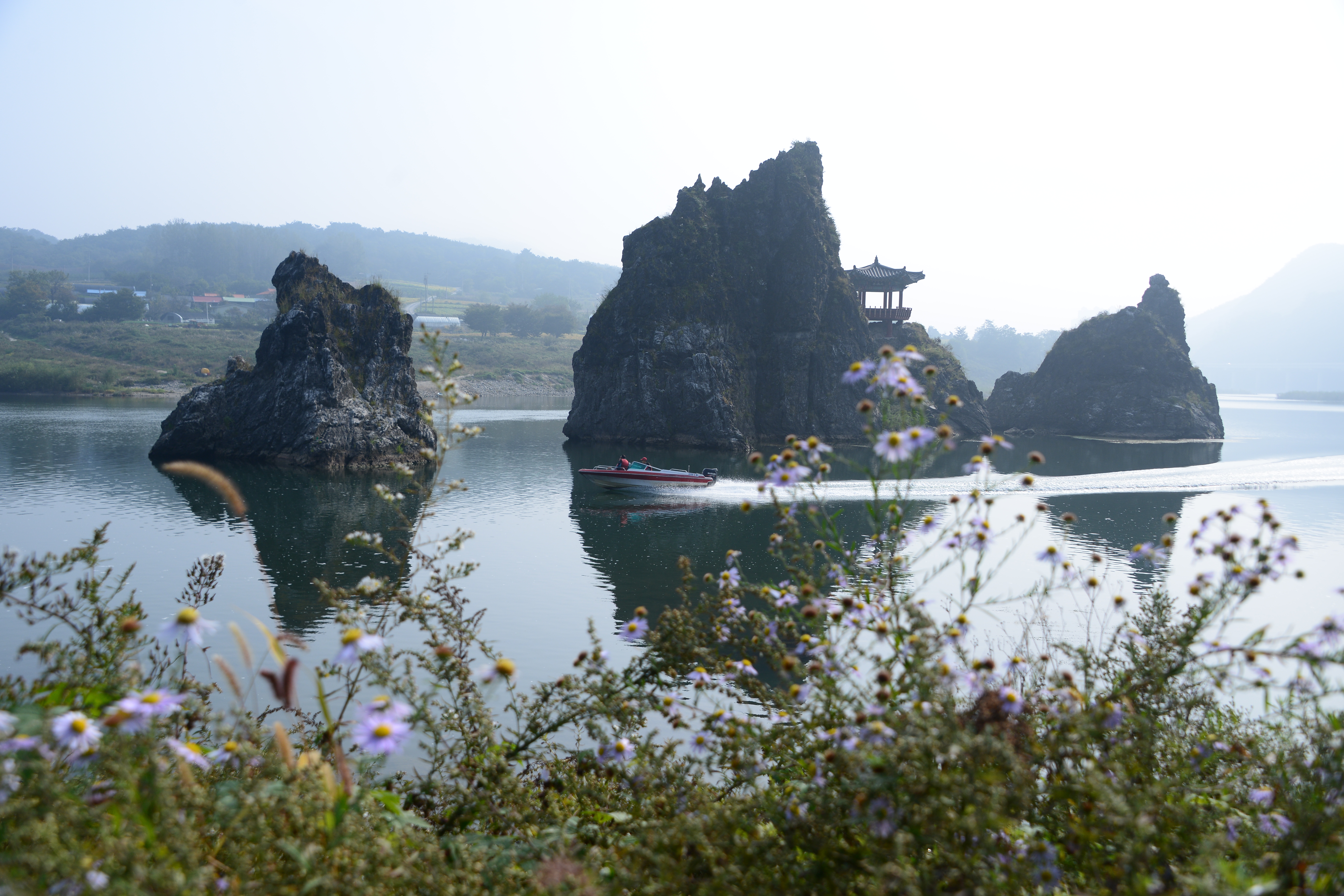 흐린 날 단양팔경중 하나인 도담삼봉에서