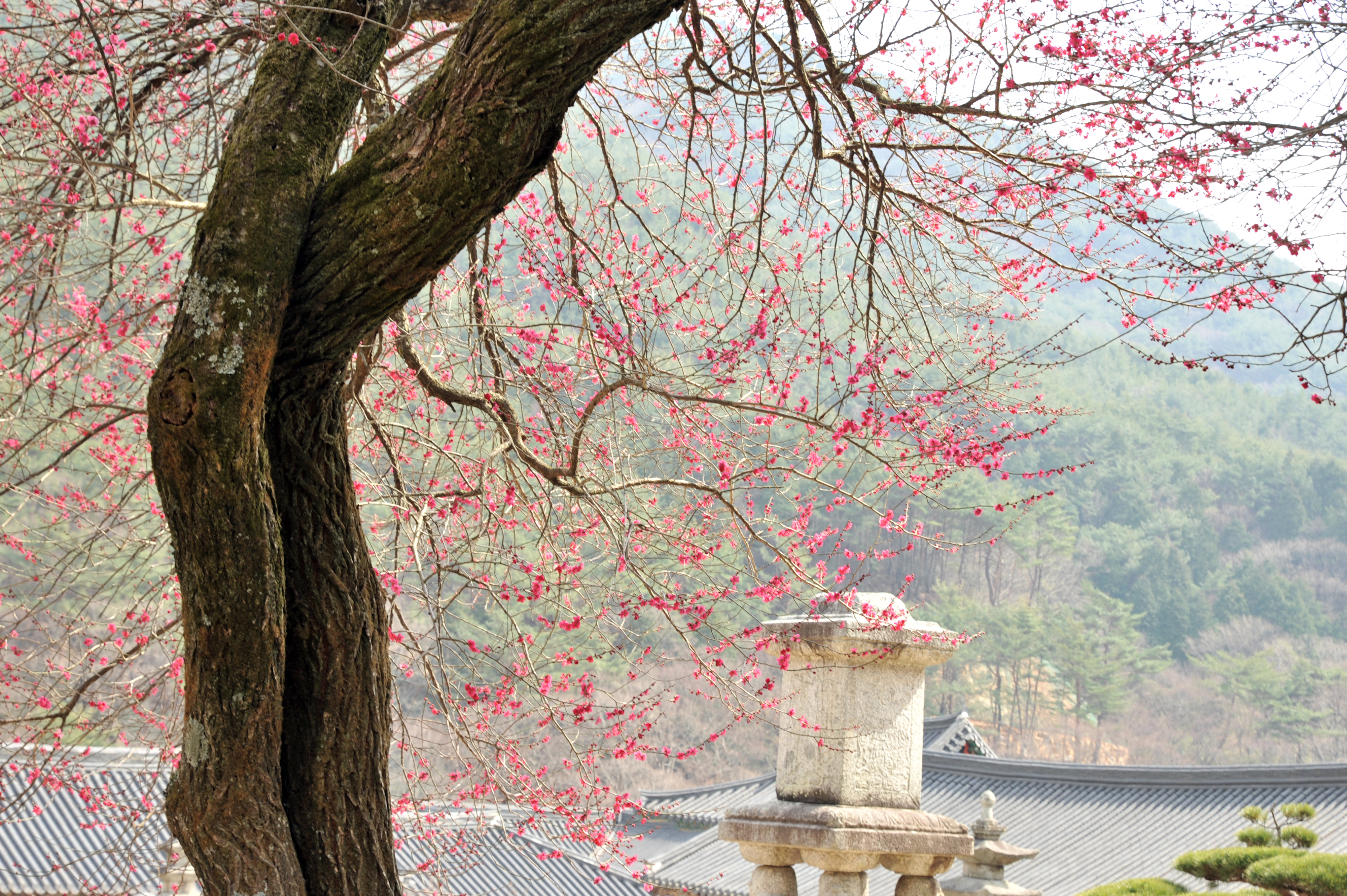 화엄사 홍매화 개화 현황 입니다.(3.22일)이제 아랫쪽 부터 피어나기 시작 합니다.