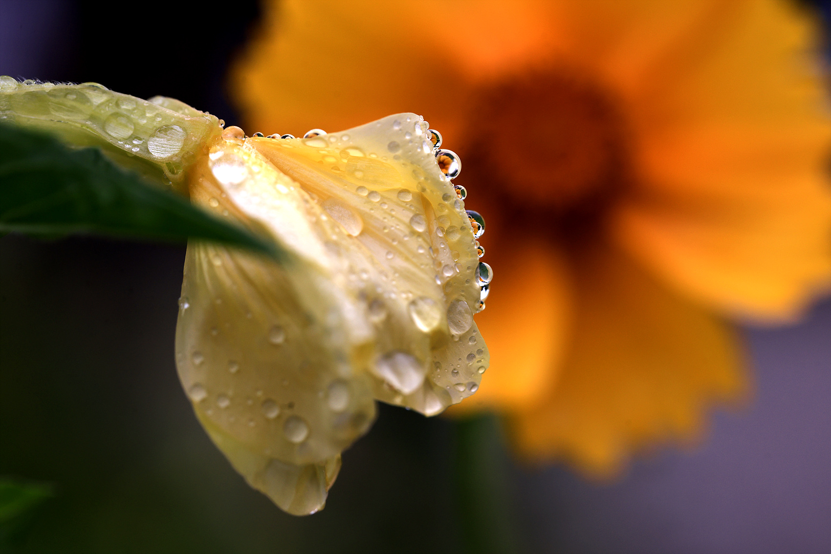 비맞은 달맞이꽃에 보석 같은 물방울이 달렸네요