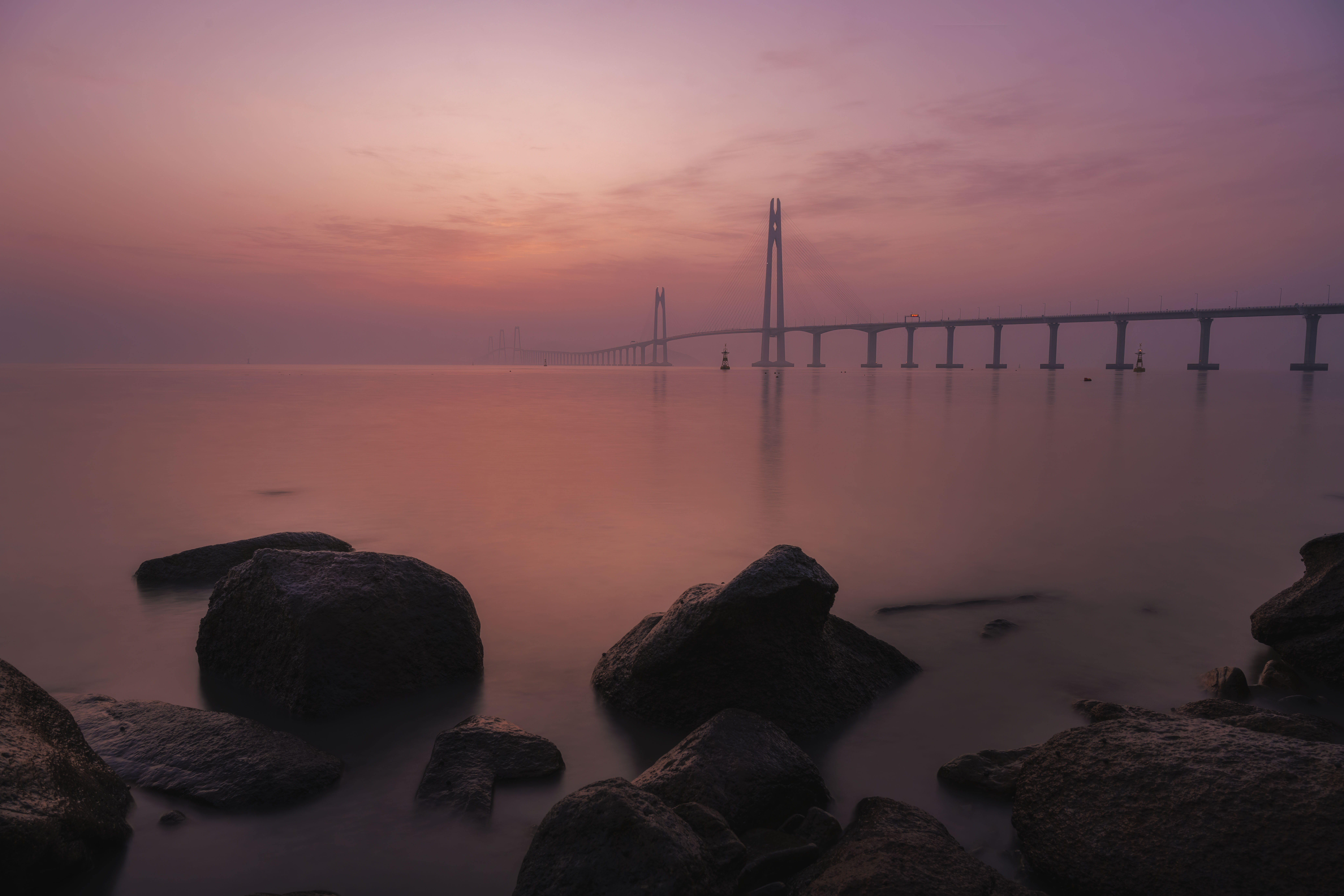 아침 여명이 피어오르기 전 붉게 물든 천사대교