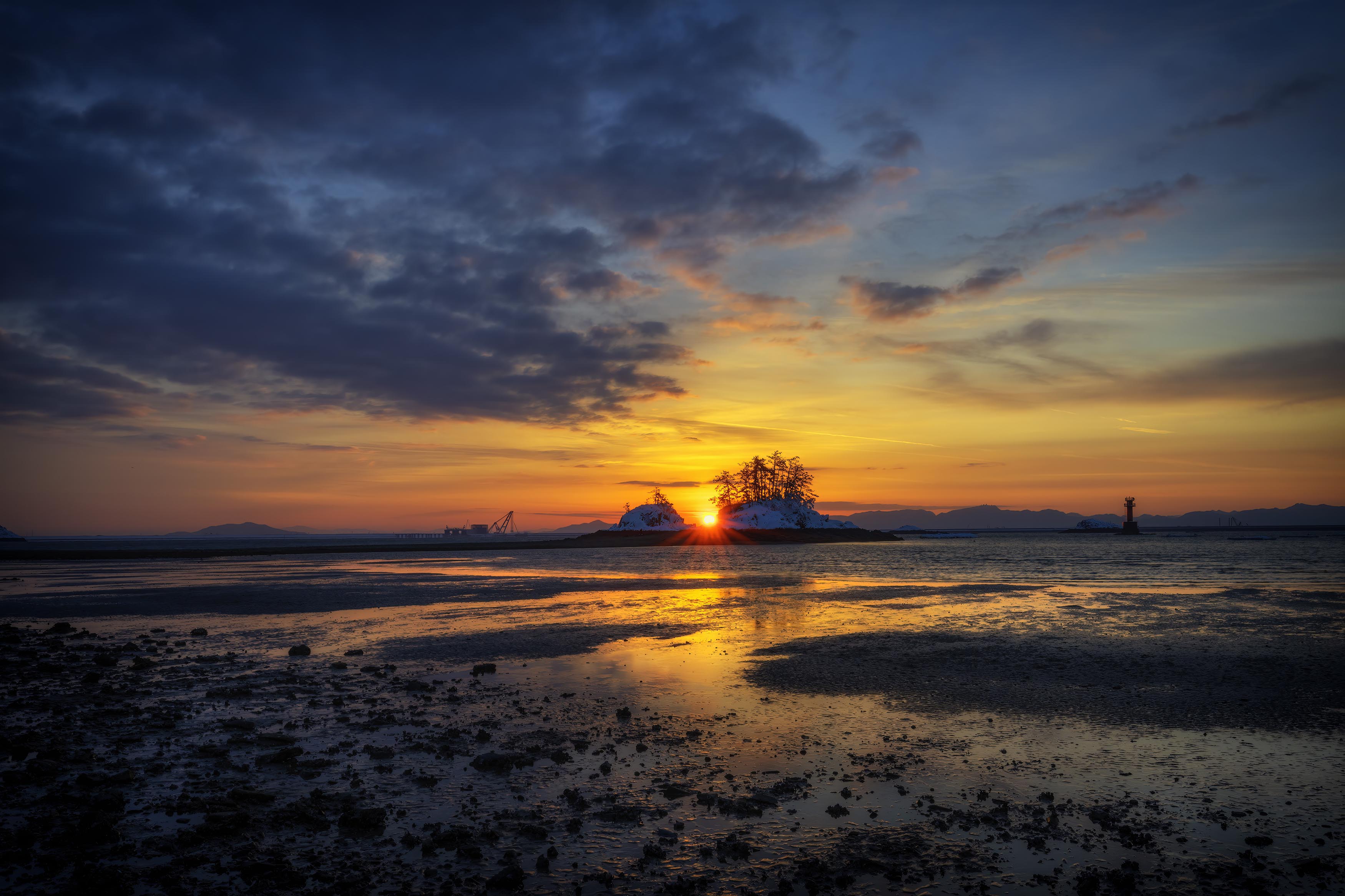 눈오는 다음날 찾아본 쥐똥섬의 일출