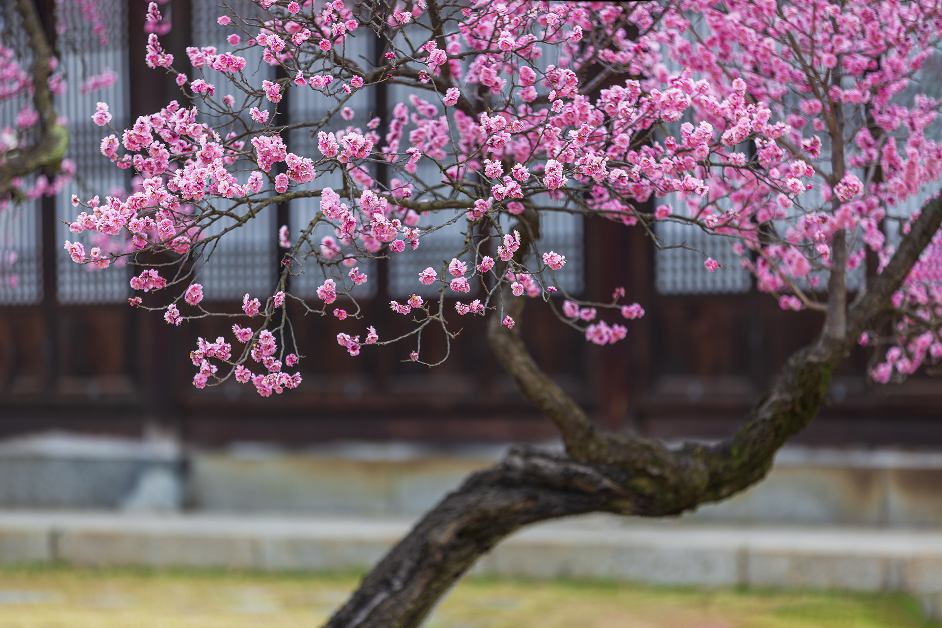 작년에 이어 올해도 달려간 현충사. 때마침 절정을 이루는 홍매가 그지없이 반가웠습니다. 문살을 배경으로 피어있는 홍매는 수형이 아담하면서도 우아함을 한껏 지니고 있어 어떻게 담아야 저 녀석의 위상에 누가 되지 않을까 싶어 곰곰 살폈지요. 사다리가 없어 간편한 의자라도 가져간 게 그나마 요긴했습니다. 봄은 자고로 이리 고아하다며 묵묵히 아우라를 뿜어내고 있는 녀석을 더 격조높게 담아내지 못함이 아쉬울 따름입니다..^^*