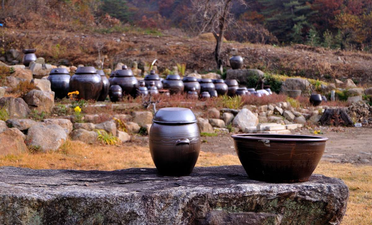시골의 정겨움이 묻어나는 장독대!