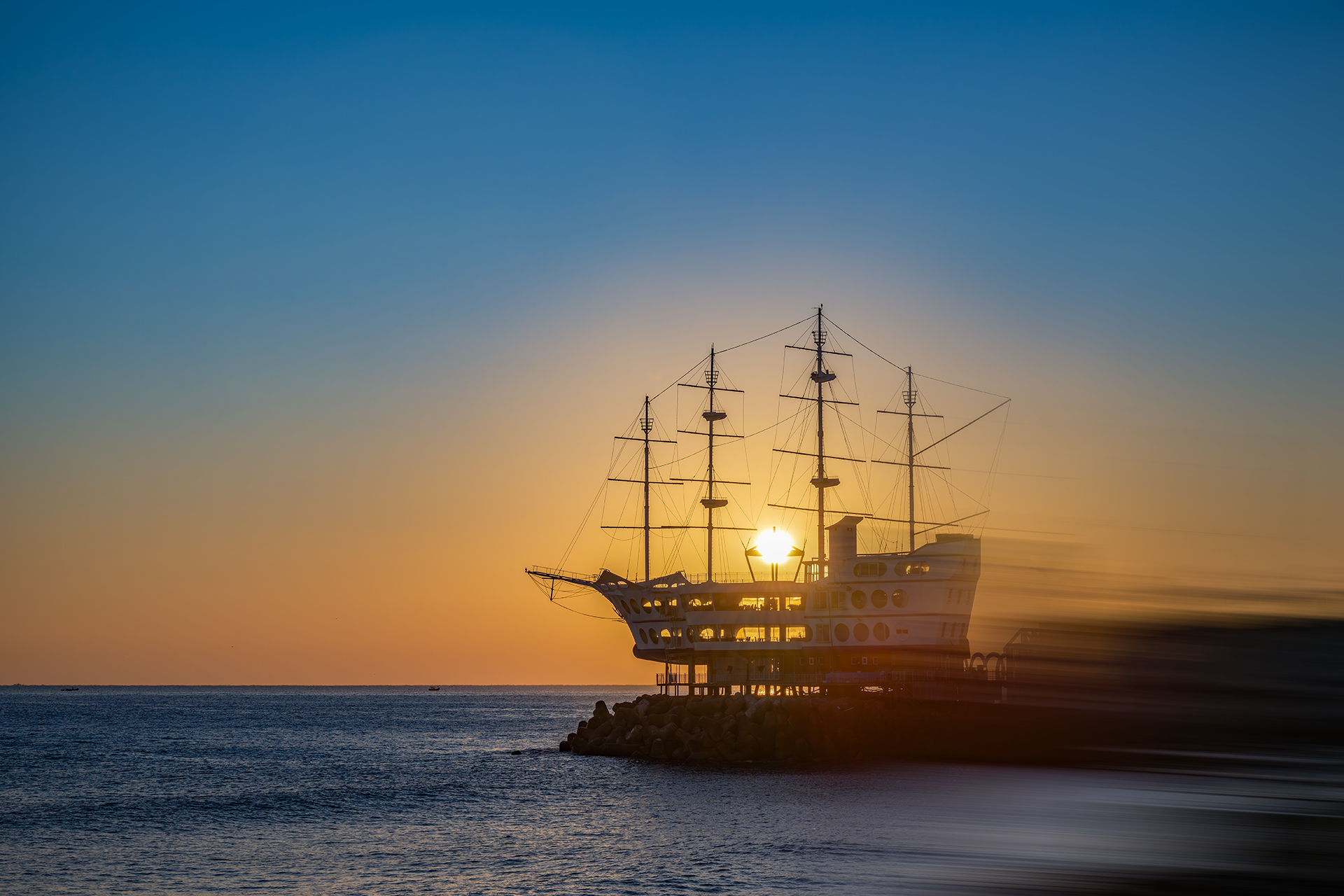 배위에 떠있는 해