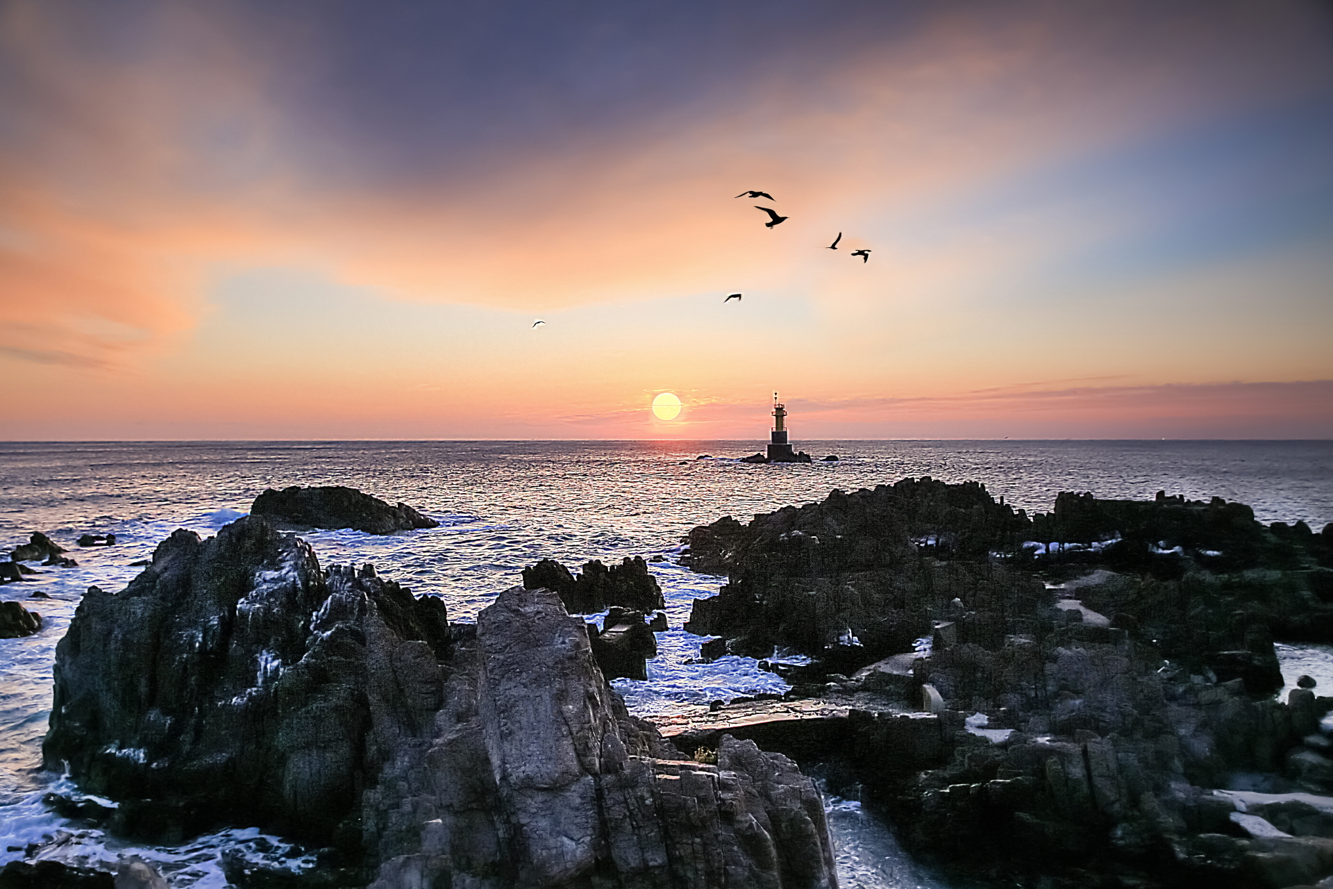 갈매기 날으는 문무대왕릉 윤정근(산수경)[♣DP37-1279]