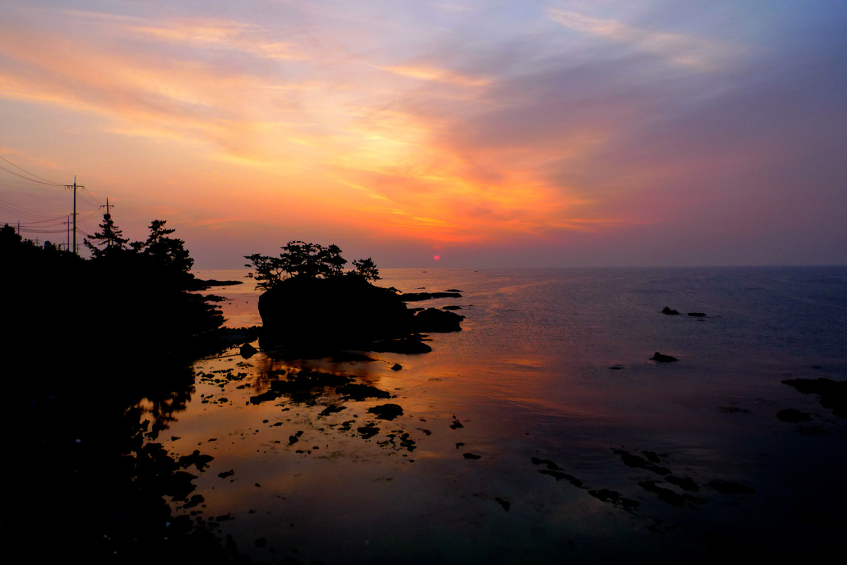 바닷물 수량이 조금 많아져서 앞쪽의 작은 바위들을 물밑으로 밀어 넣으니