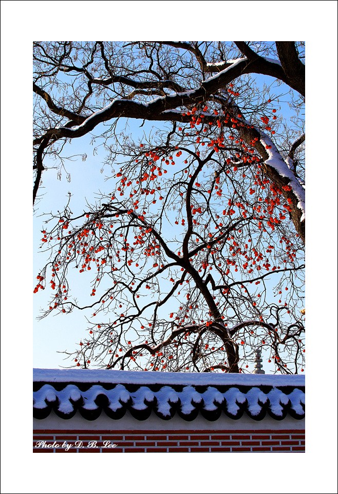 어제 경회루 담장너머의 감나무 풍경을 담았습니다.