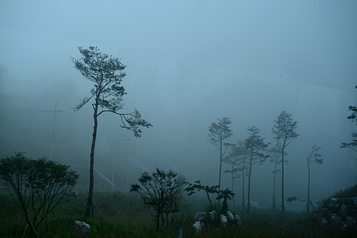 버스차창밖으로 급히 카메라에담은 안개낀풍경 입니다.