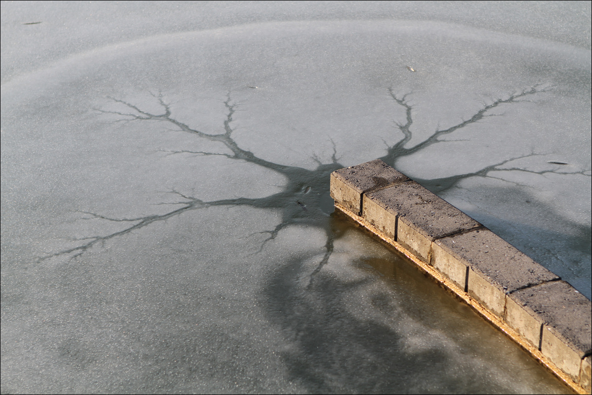 얼음위에 나타난 나무가지가 있었습니다.
