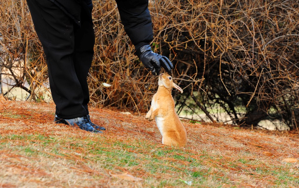 먹이에 길들여진 저 토끼-- 저 아저씨를 아예 못가게 길을 막아요.