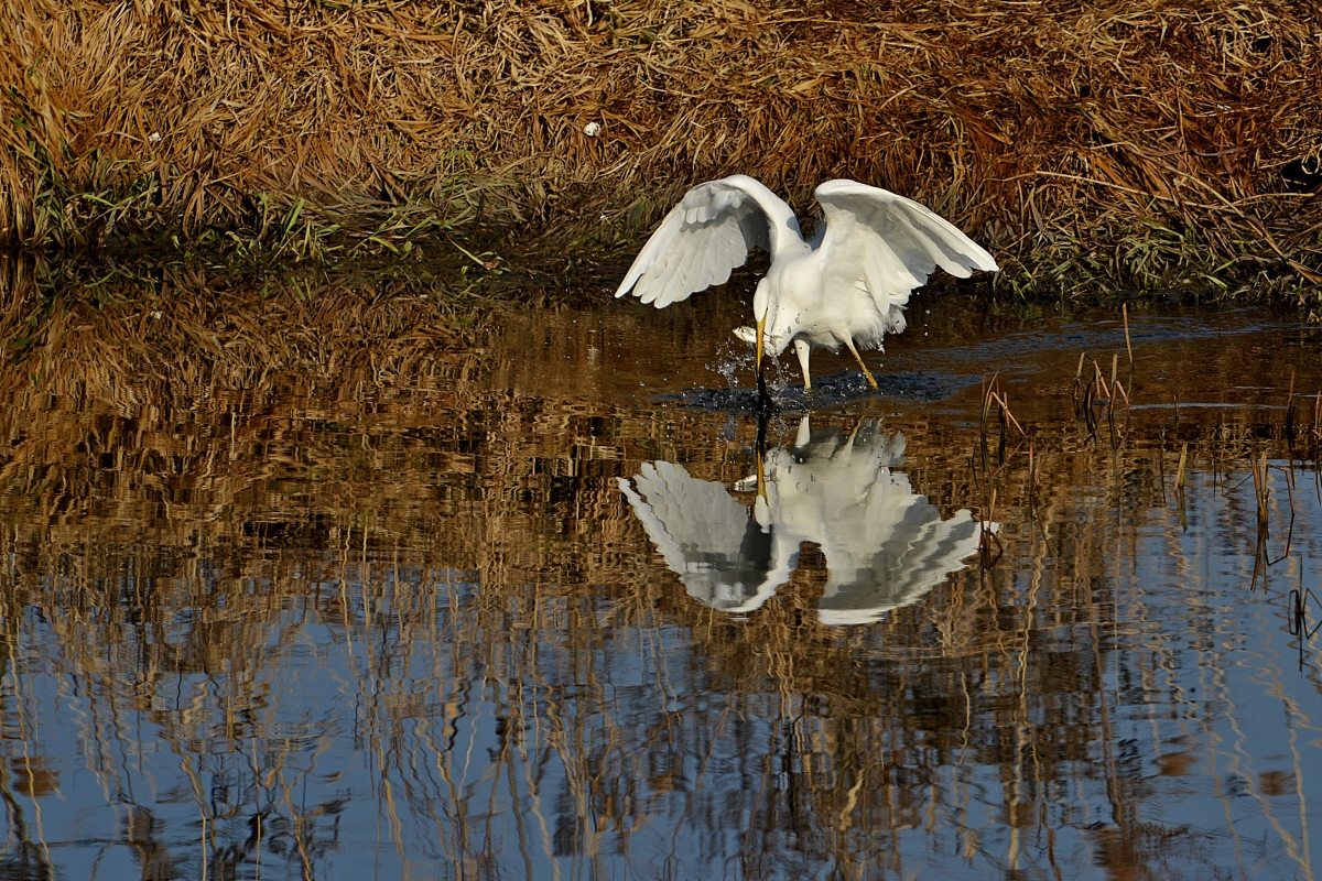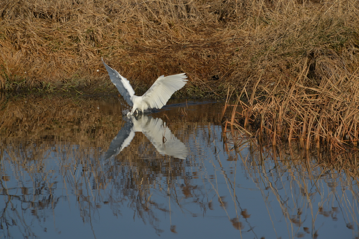 백로의 고기사냥은 대체적으로 흐르는물에는 가만히 기다림이며 숲풀 가성자리는 한발로 살살움직여 고기가 놀라 달아나면 사냥을한다
