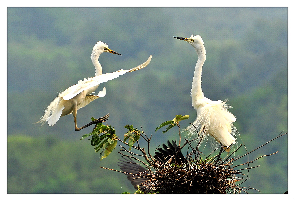 새끼을 지키던 어미가 먹이을 잡아오는 아빠에게