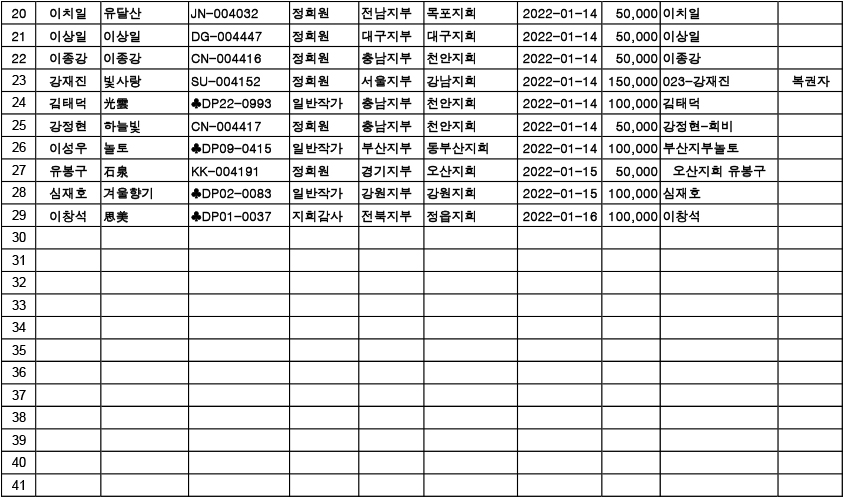 [알림] 2022년 연회비 입금자 명단 ( 2022.01.17. ~ 01.23)