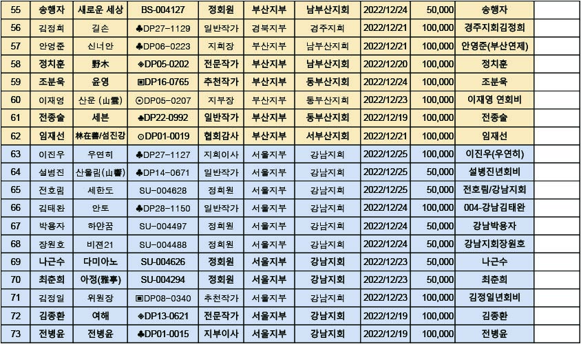 [알림] 2023년도 연회비 납부내역(2022년12월19일~2022년12월25일까지)
