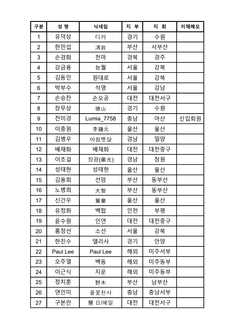 2026년 연회비 납부 내역(2025년 12월 01일 - 12월 07일까지 입금자 명단)