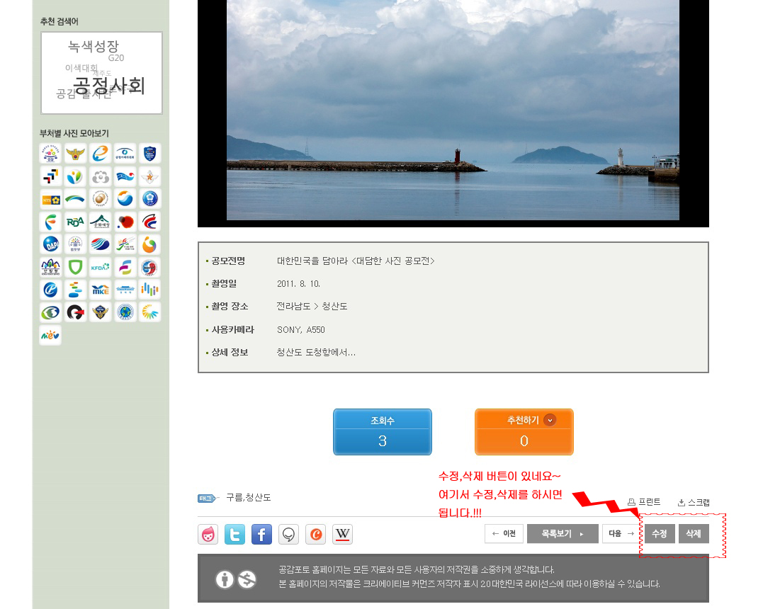 출품하신 사진의 수정, 삭제에 대한 문의가 많으신 것을 알고 있습니다.