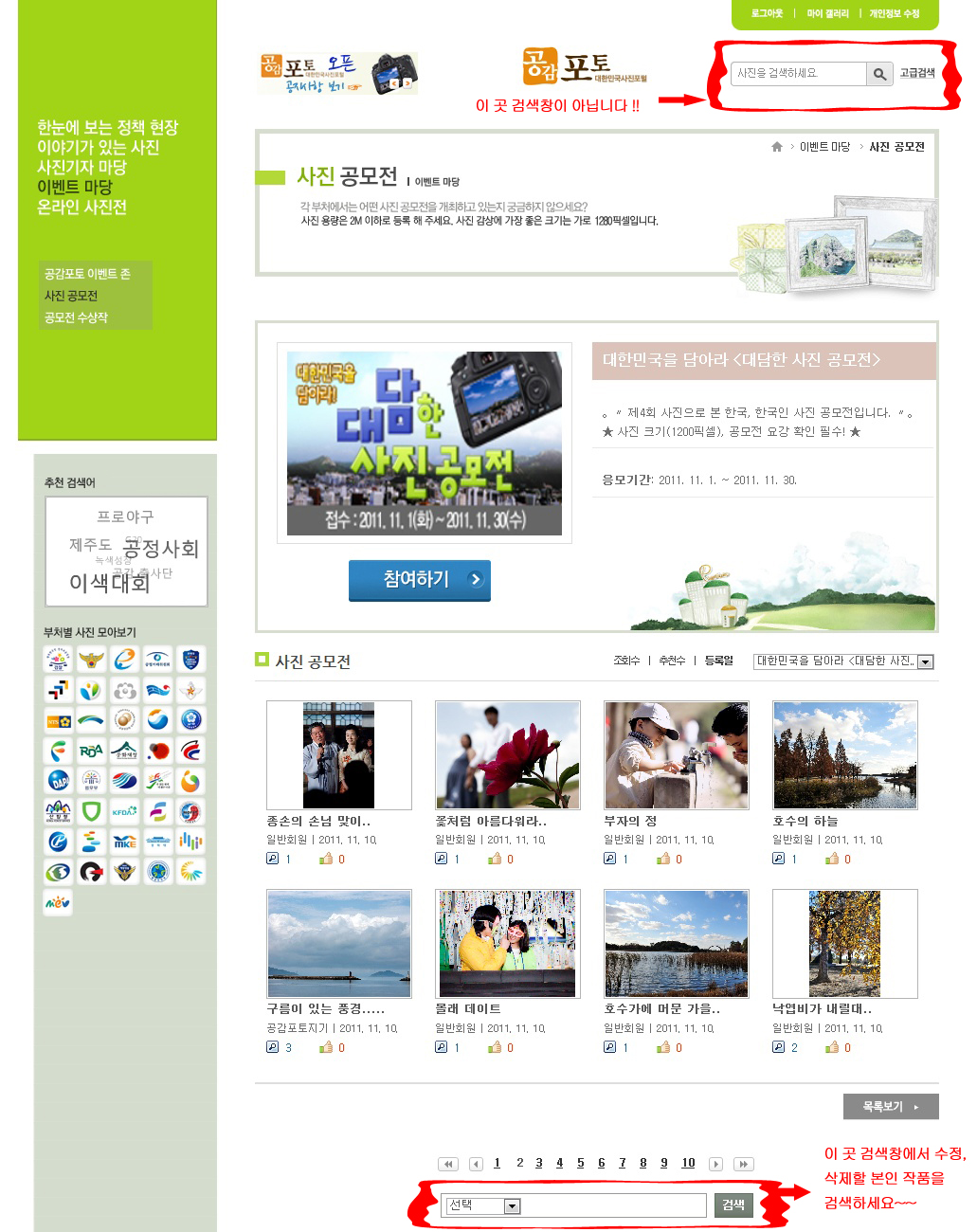 우리 협회의 '내 작품보기'와 유사한 '마이갤러리'가 있지만 아직은 그 곳을 통한 수정, 삭제는 안되고 있습니다.