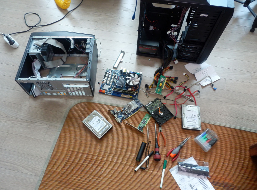 컴 부품 새집으로 이사 중....ㅎ 마더보드, 하드3개, 그래픽카드, 하드보안관, 랜카드등...
