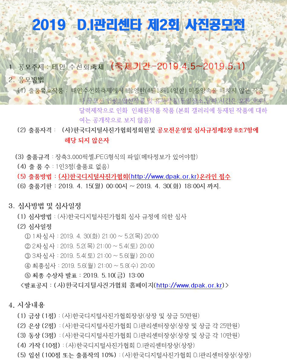 2019년 D.I관리센타 제2회 사진공모전 태안수선화축제