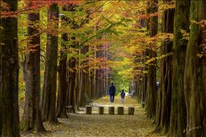 문턱에서 오색 찬란한 단풍의 계절에