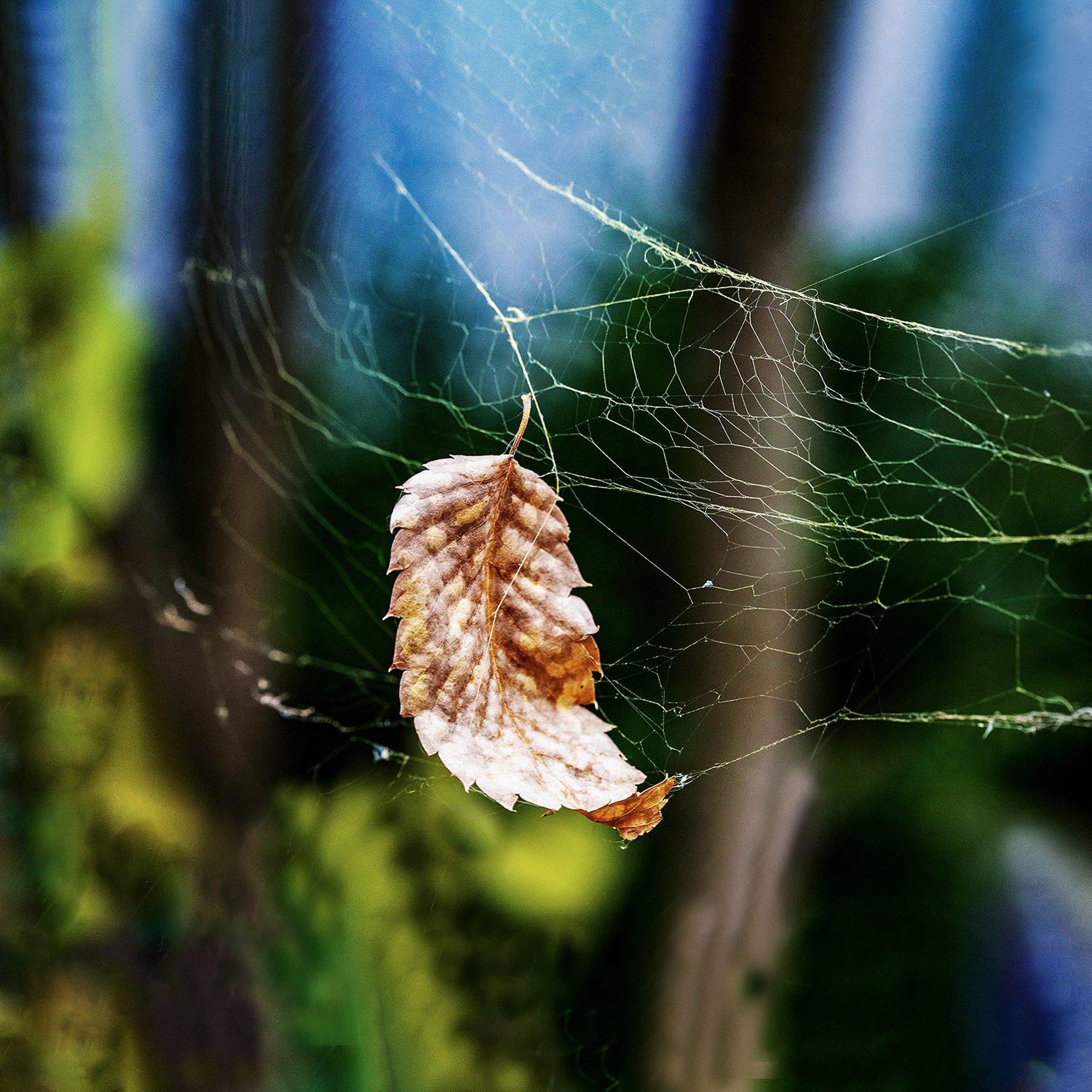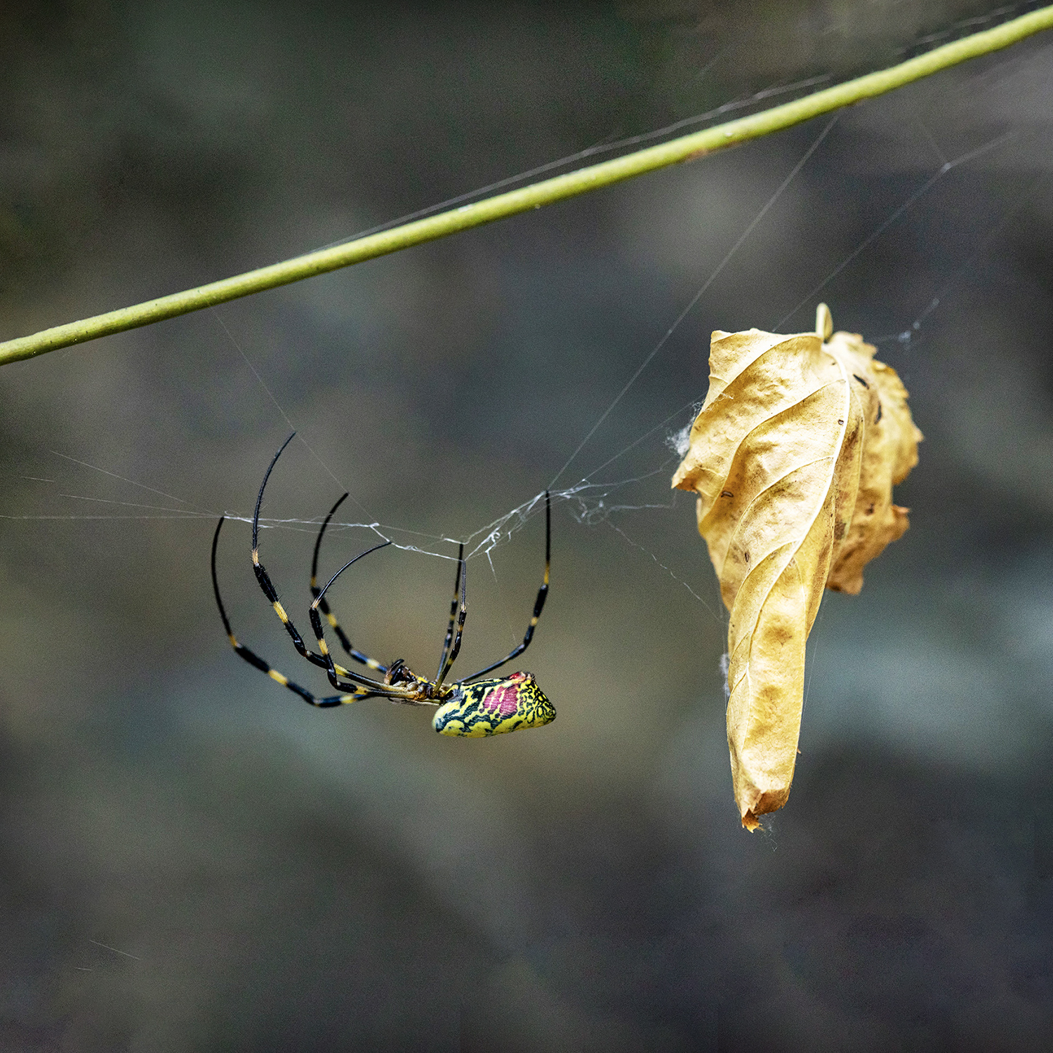 벌레를 잡기 위한 거미줄도 겨울이 되어가니 벌레는 붙지 않고 나뭇잎만 붙어 있어 먹고 살기 힘들어 지는 것 같습니다.