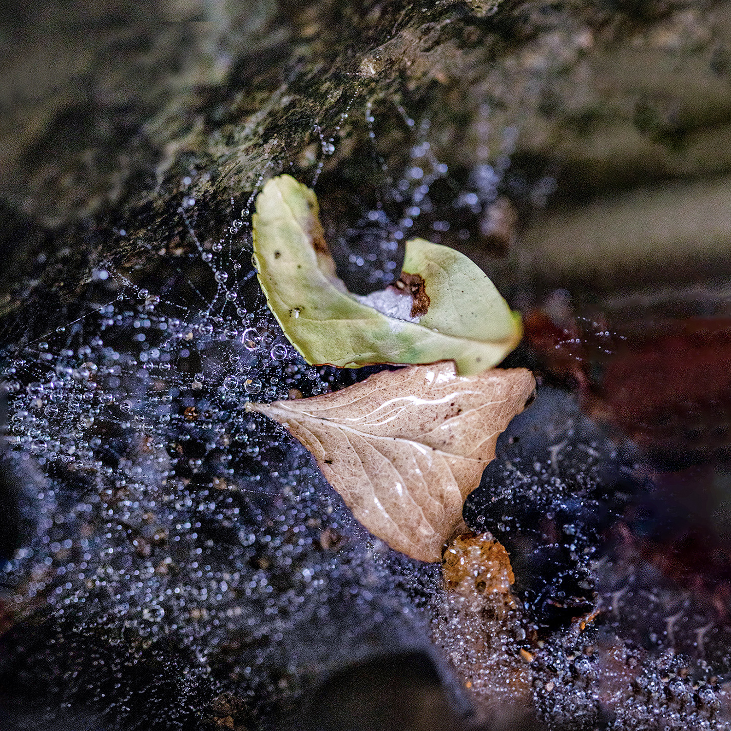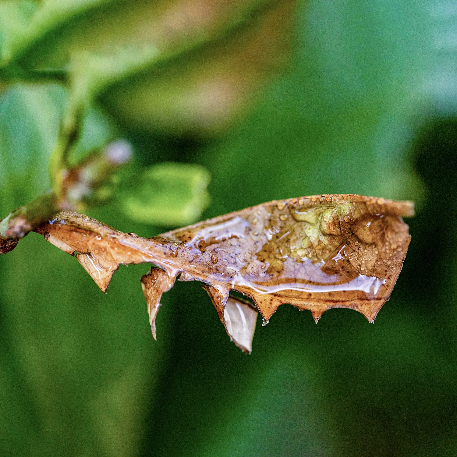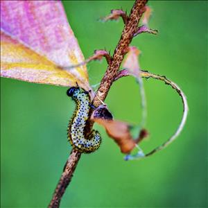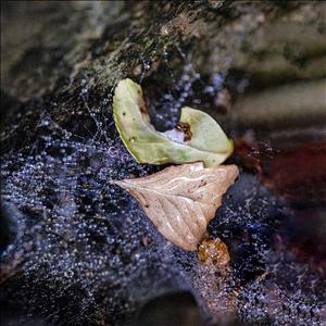 벌레에 다 빼앗기고 앙상한 뼈만 남은 나뭇잎, 거미줄에 걸린 나뭇잎과 가시에 찔린 나뭇잎. 이런 와중에도 새생명이 태어나기도 합니다.