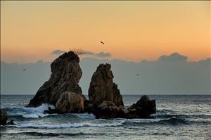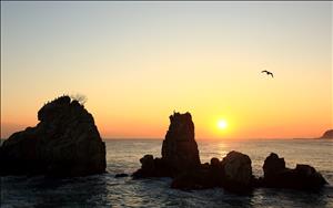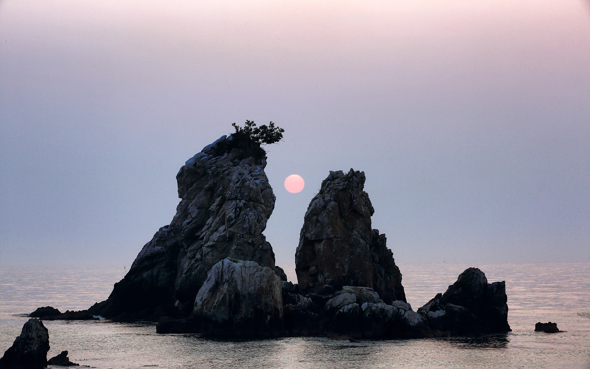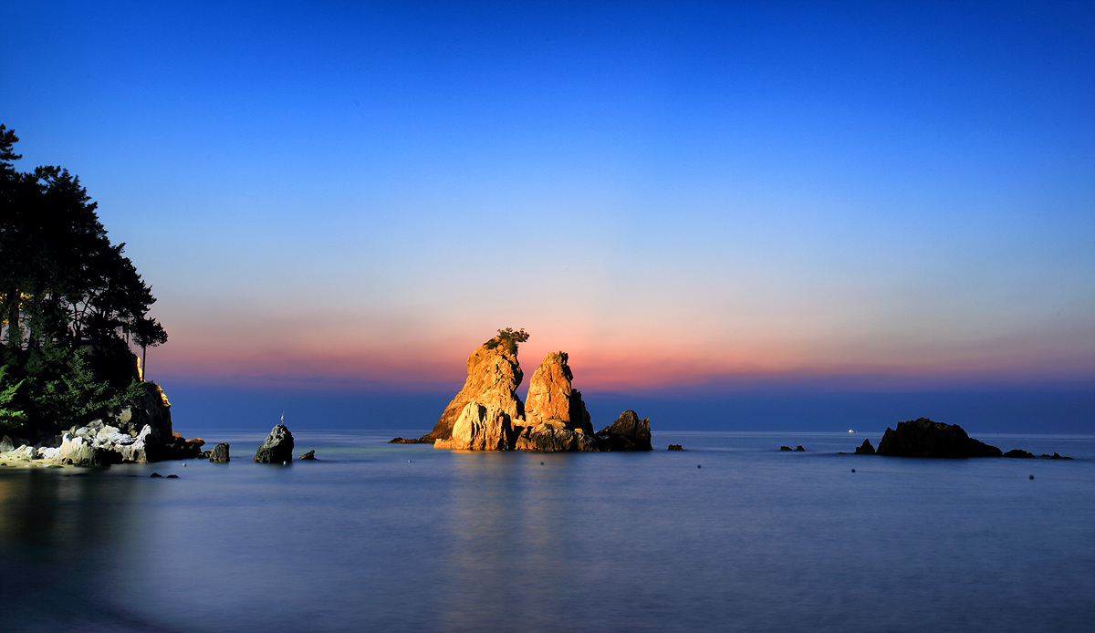 추암해변의 형제바위를 단일 주제로 정하여