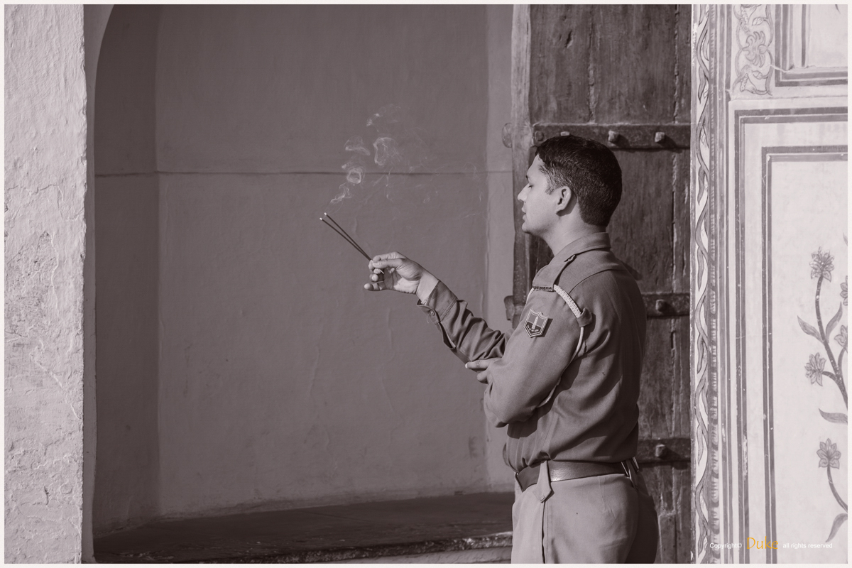인도하면 떠오르는 것이 강렬한 색상인데 사진에서 색을 빼면 어떨까?
