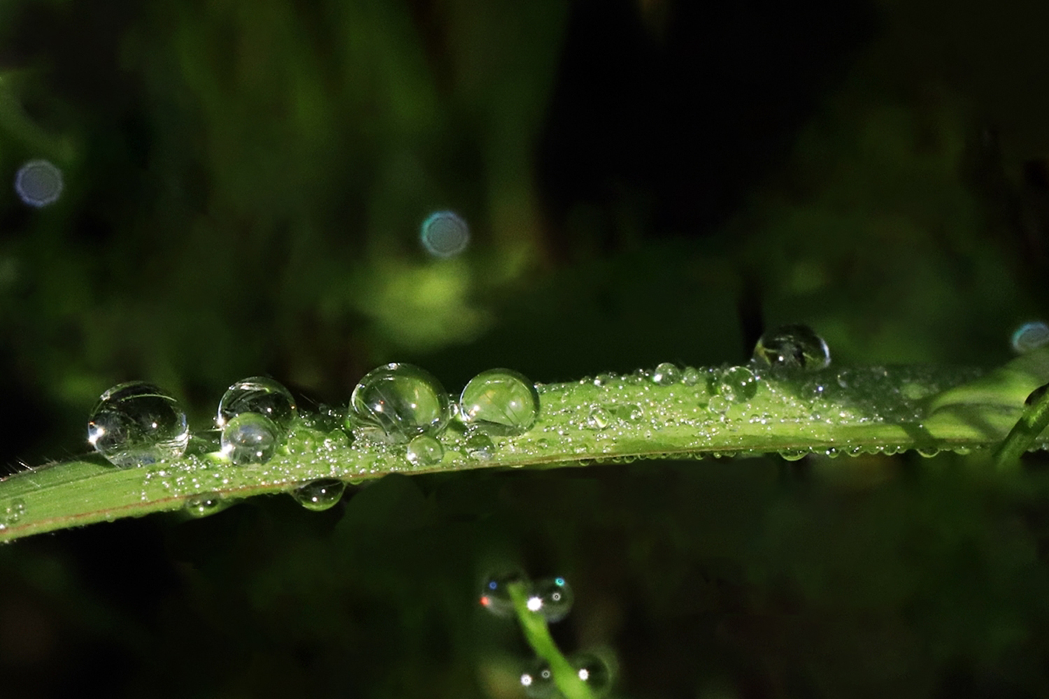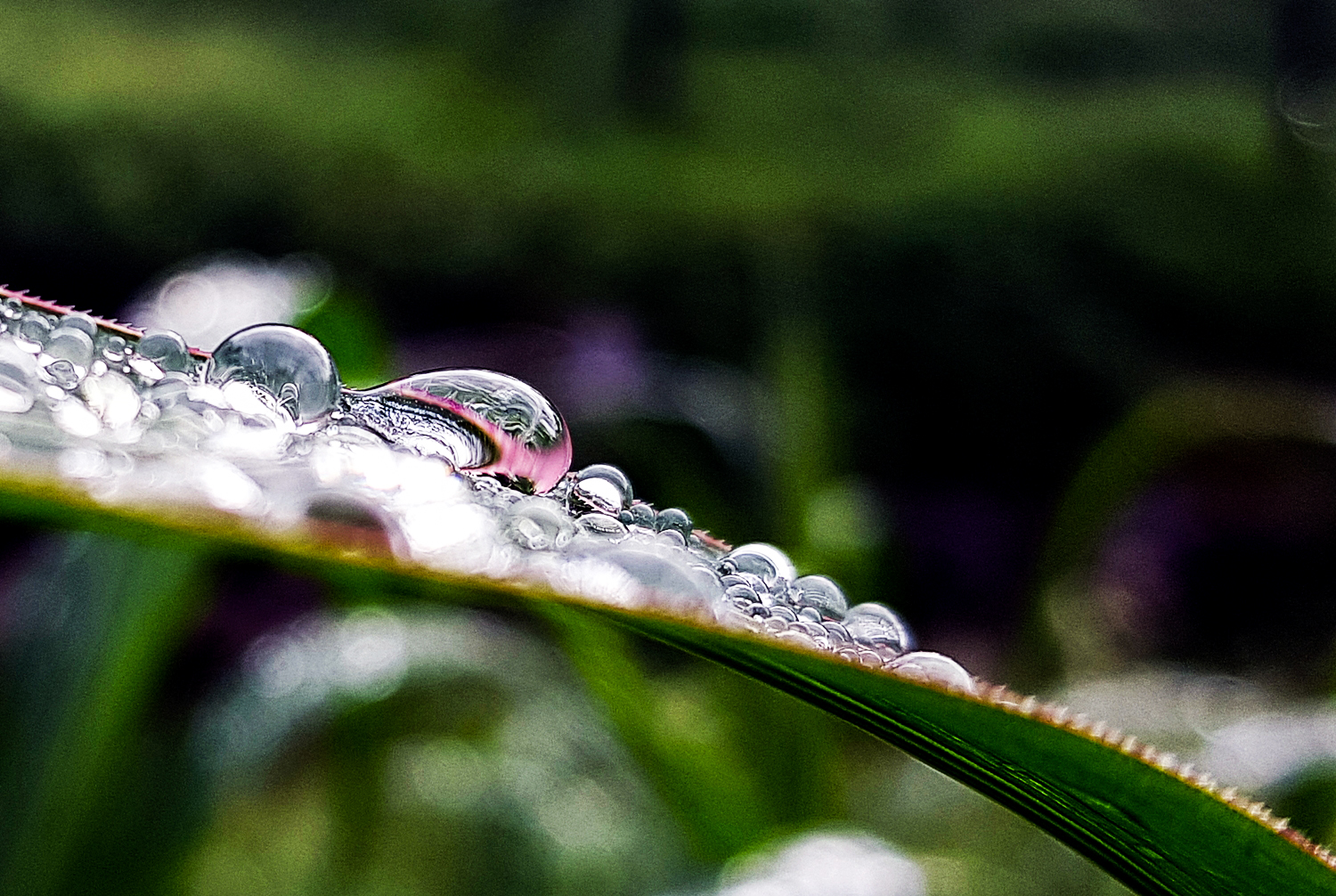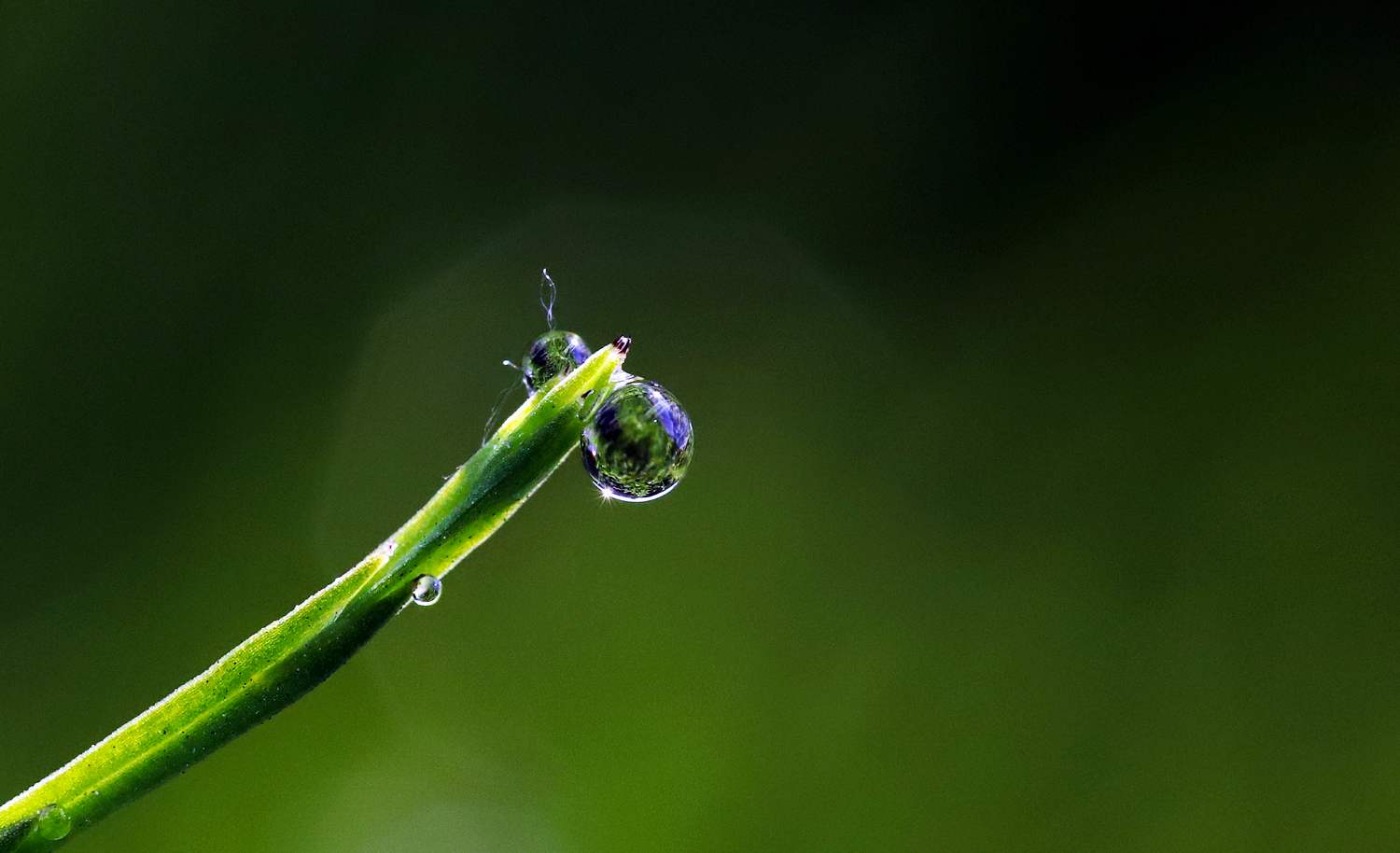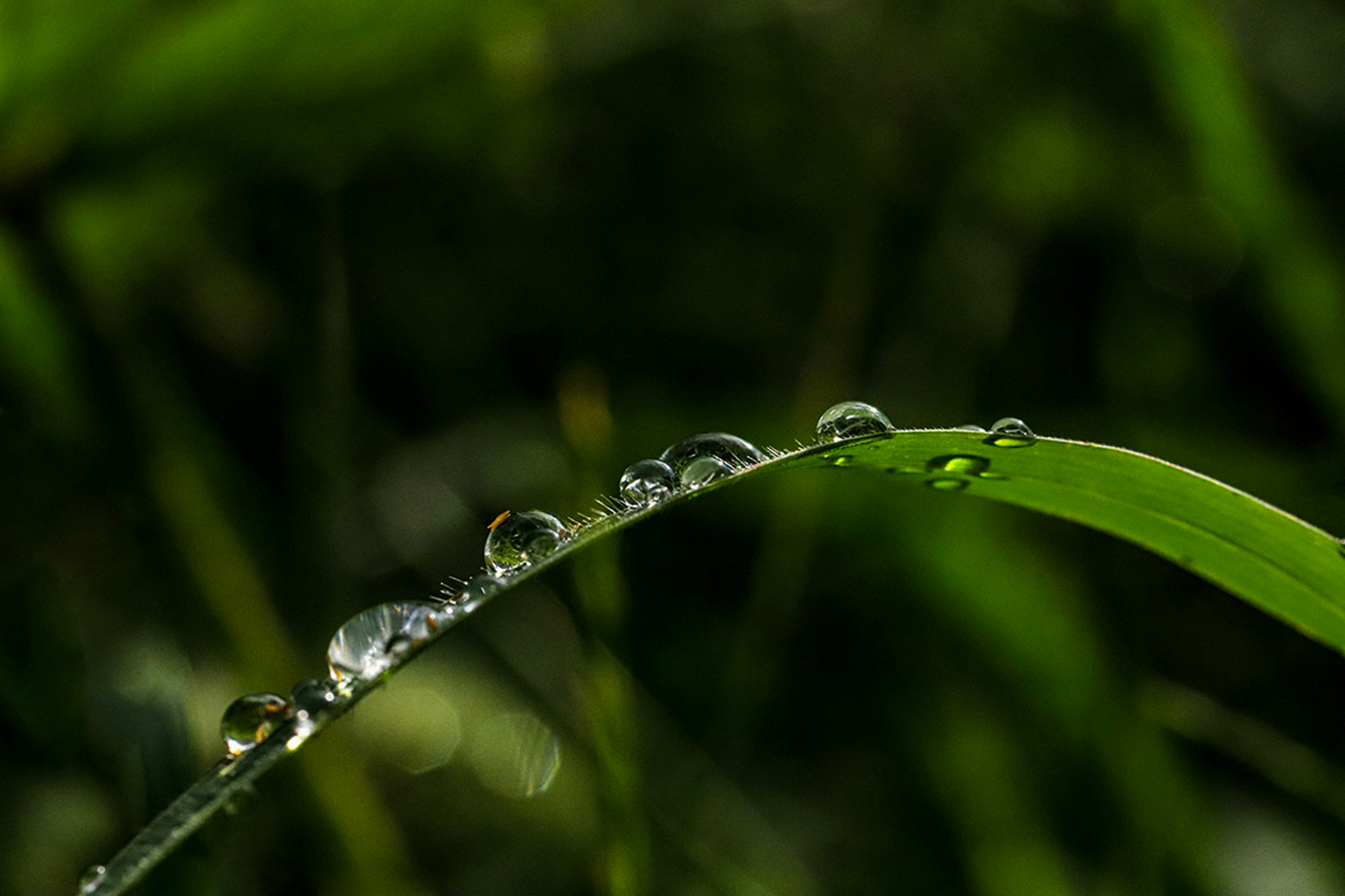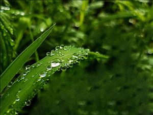풀잎에 맺힌 이슬방울들이
