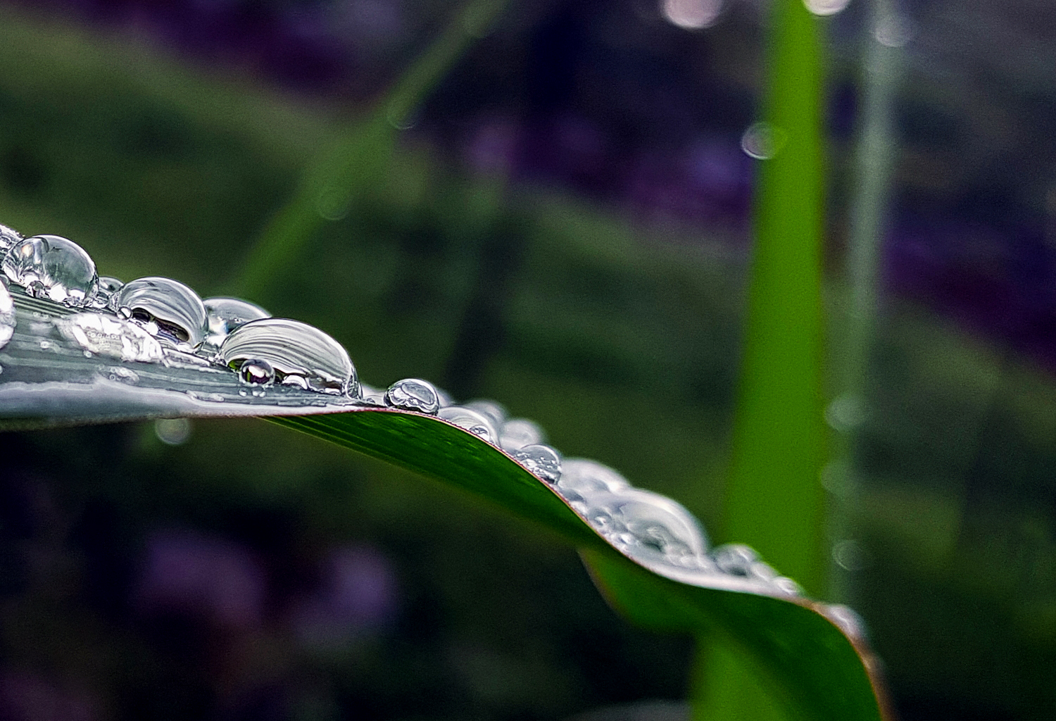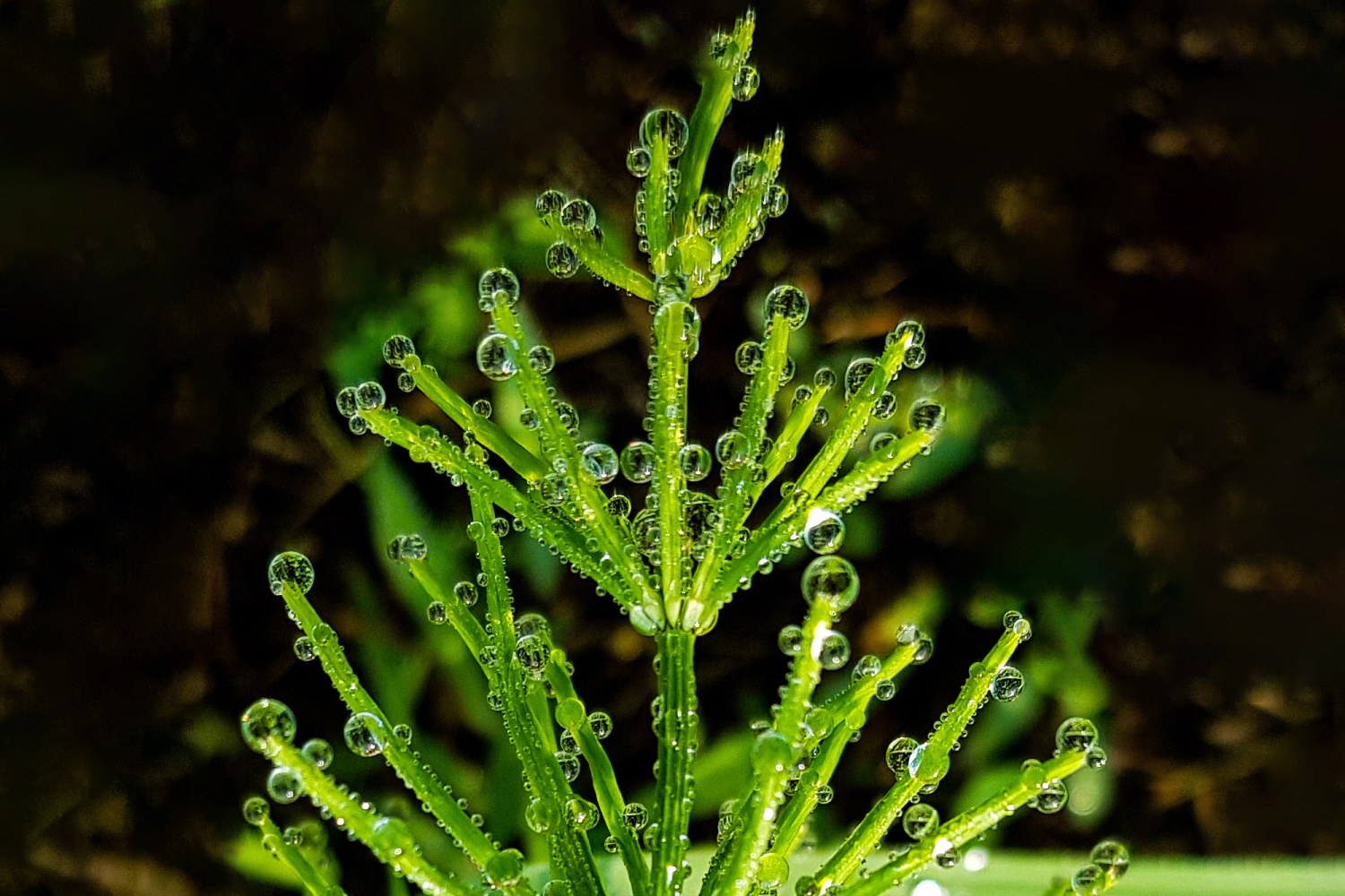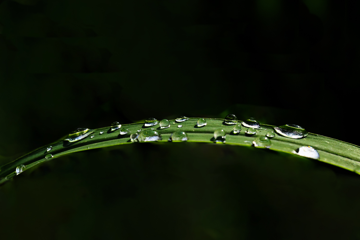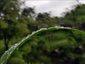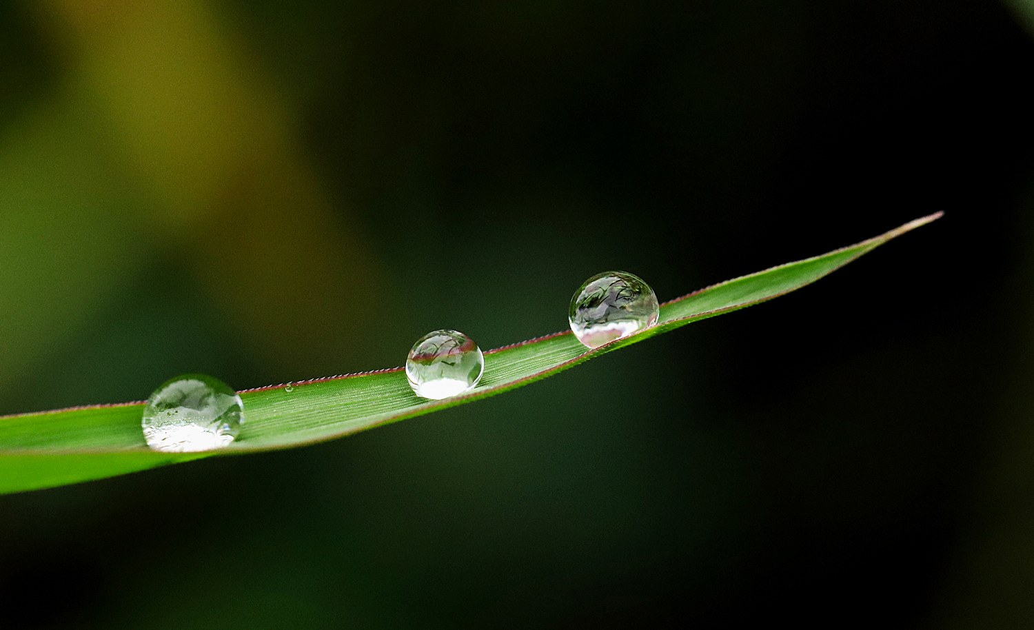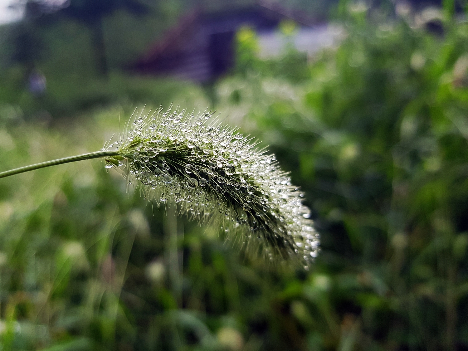 풀잎에 맺힌 이슬방울들이