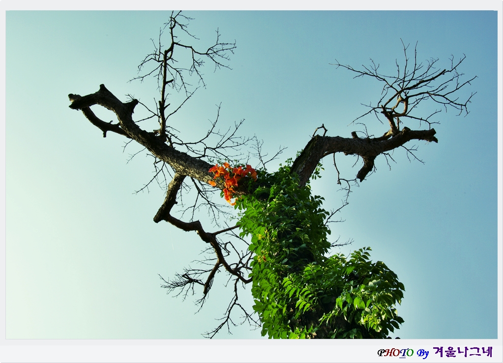 어느 야외식당에서 멋진 고목나무에 능소화가 어우러진 소경을 담아 보았읍니다