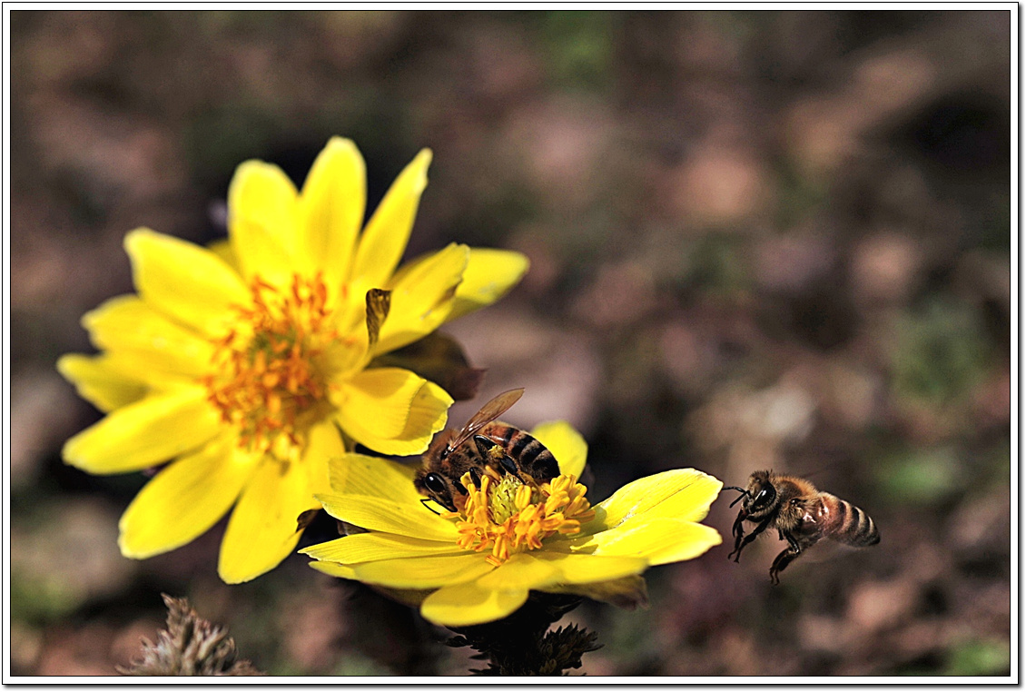 양지바른곳에 화사한 자태와 향내에 취해 꿀벌이 빠쁘게 움직입니다.