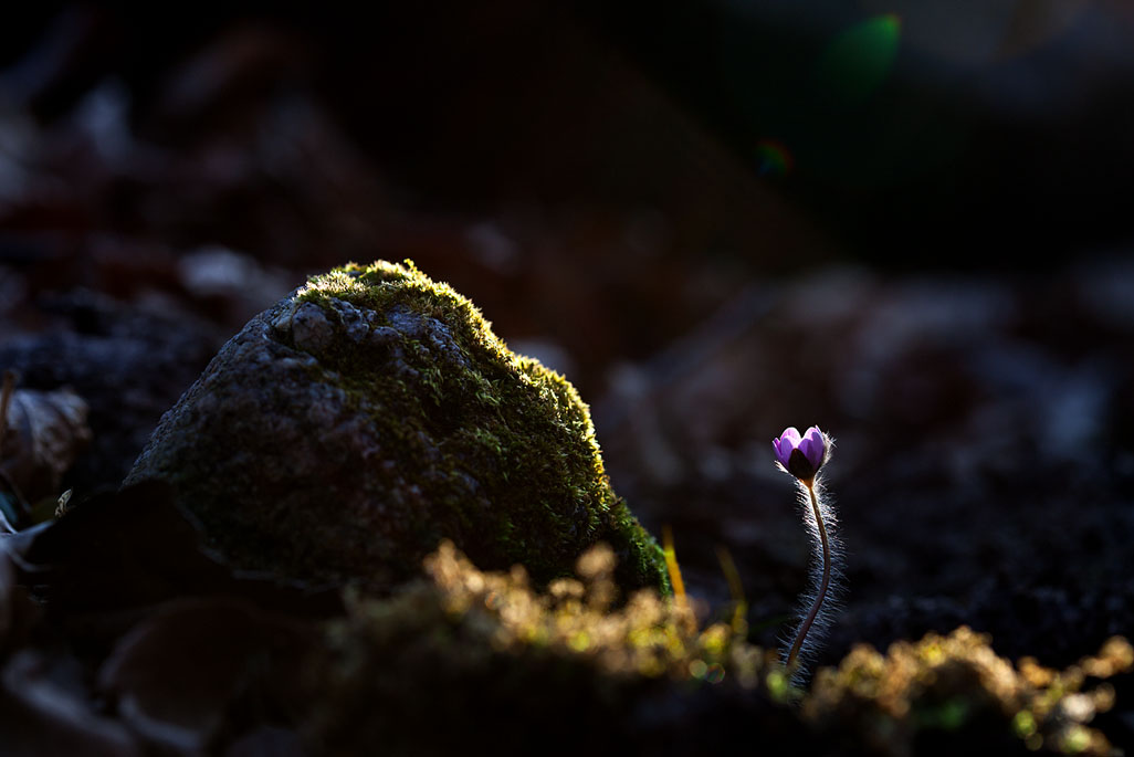 고고하고 품위있는 자태로 살아가는 아름다운 노루귀 한 송이